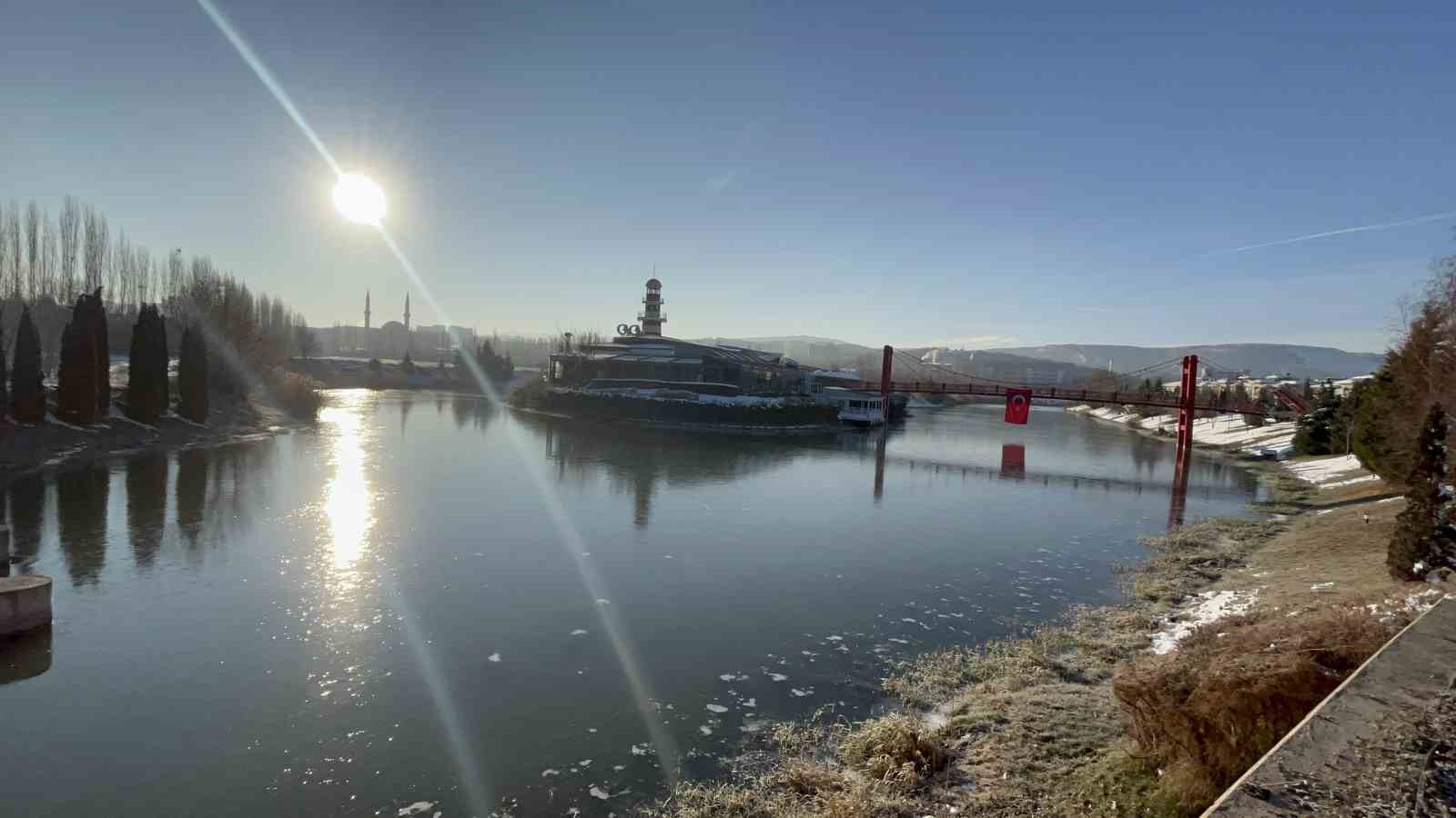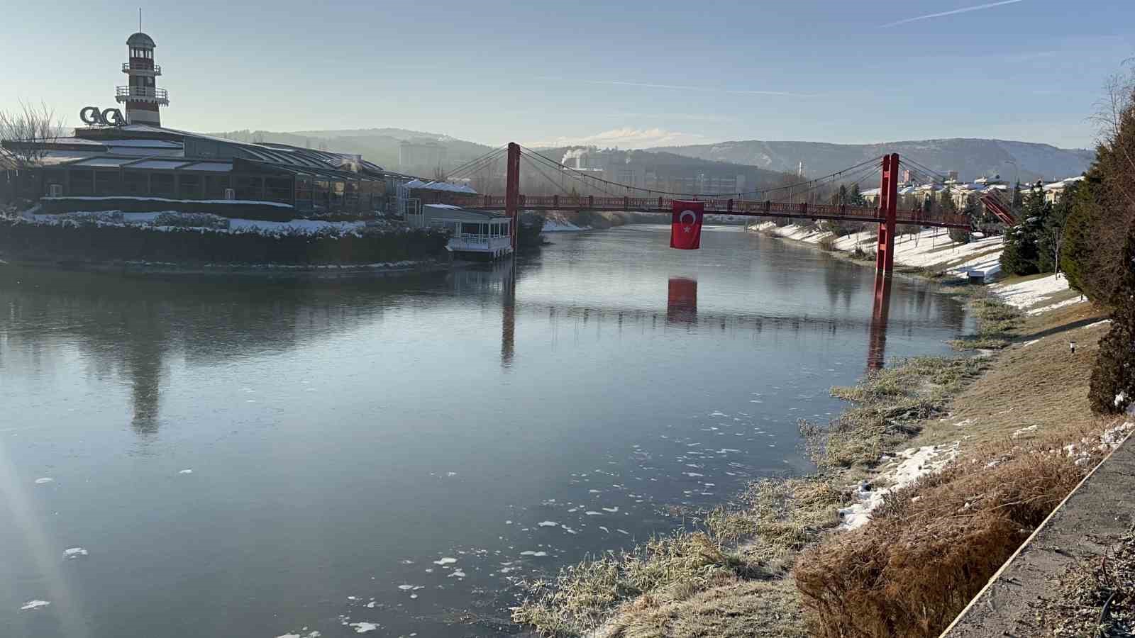 Eskişehir’de gece saatlerinde hava sıcaklığının sıfırın altına düşmesiyle Porsuk Çayı yer yer buzla kaplandı.