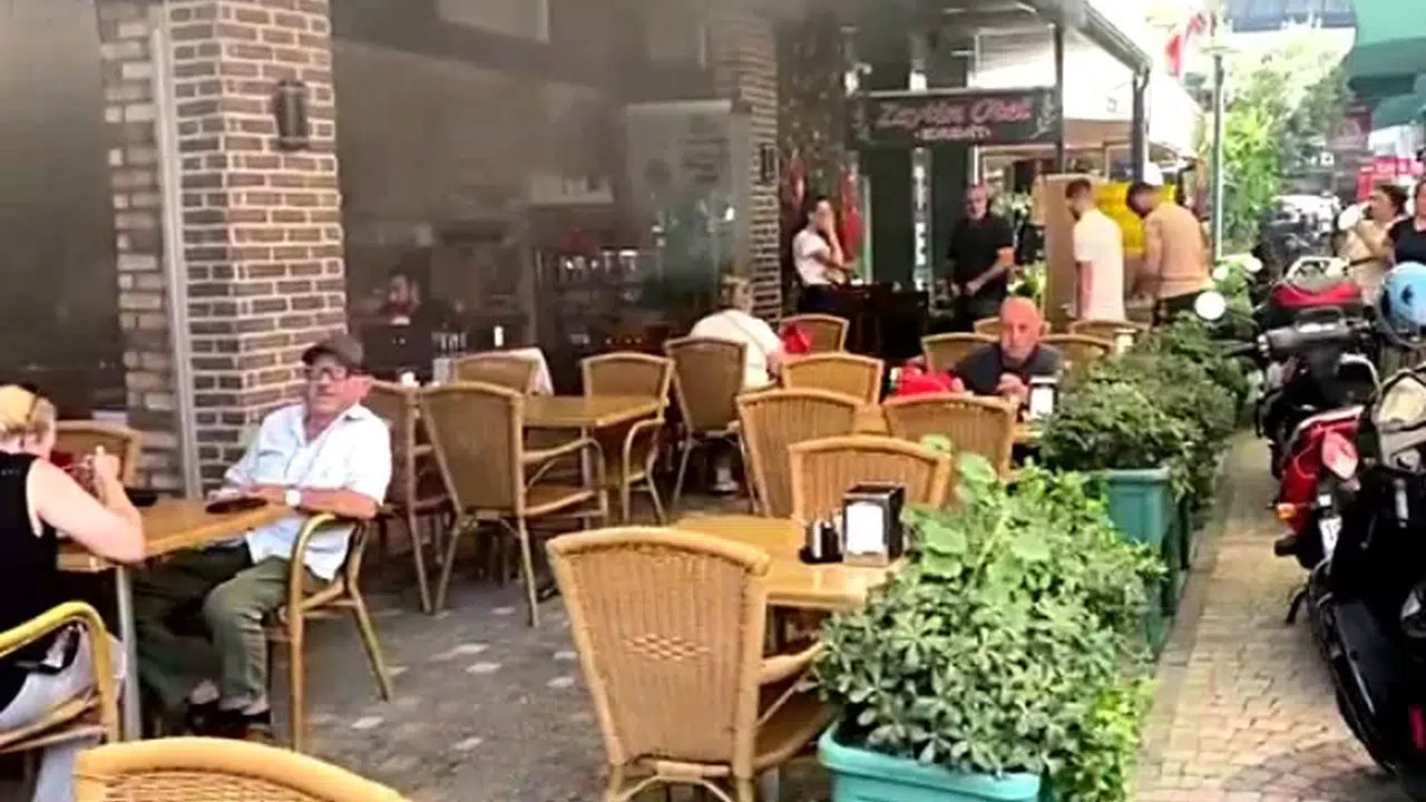 Balıkesir’in Edremit ilçesinde şehir merkezinde bir restoranda binadan dumanların yükselmesi esnafta büyük paniğe neden oldu. Baca yangınında her yer duman altında kalırken, diğer yandan da yemek yiyenlerin paniğe kapılmadan yemek yemeye devam etmeleri ilginç görüntü oluşturdu.
