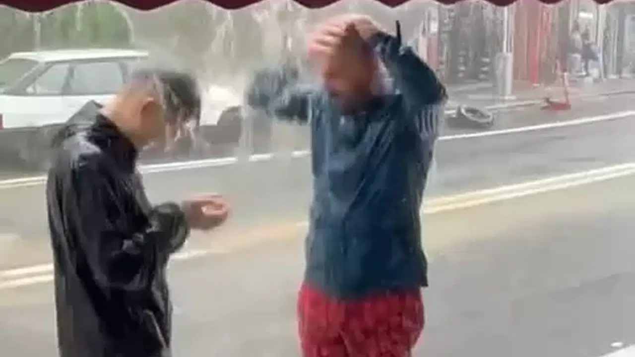 Rize’de Sıcaktan Bunalan Gençler Yağmur Altında Duş Aldı