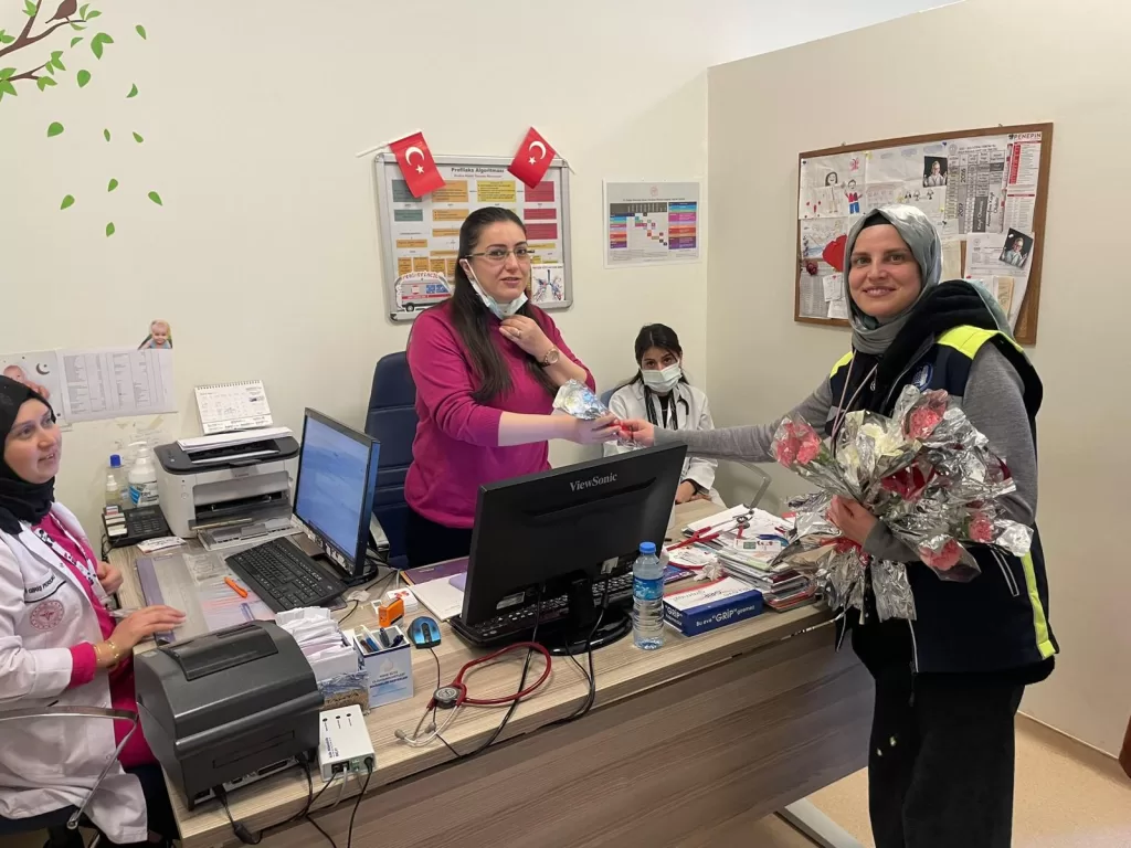 Aşgın, Basın Yayın ve Halkla İlişkiler Müdürlüğü ekiplerine verdiği talimat ile de sağlık çalışanlara çiçek verdi.