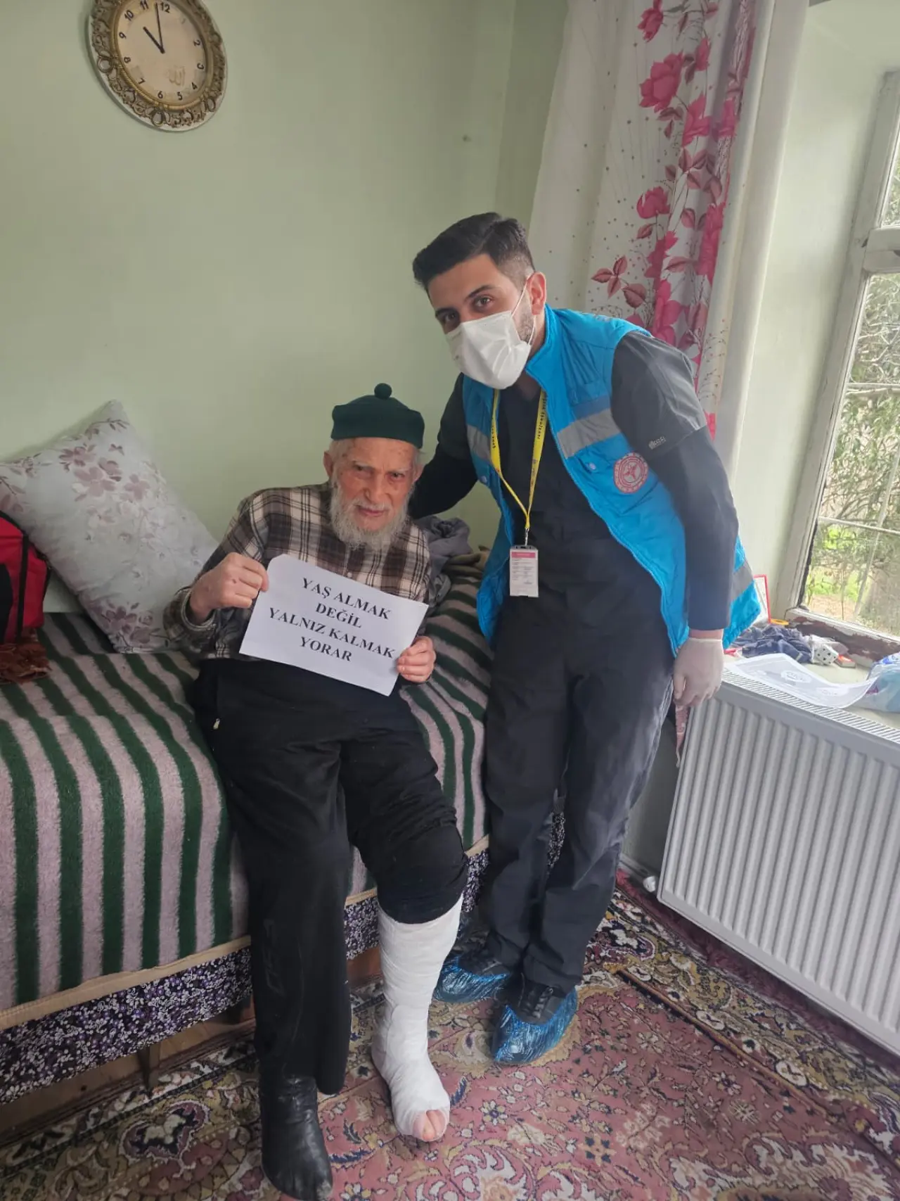 Evde sağlık hizmetlerinden faydalanan çınarların sağlık durumları hakkında da bilgi alan personeller büyüklerin hal ve hatırlarını sorarak onlara moral verdi.