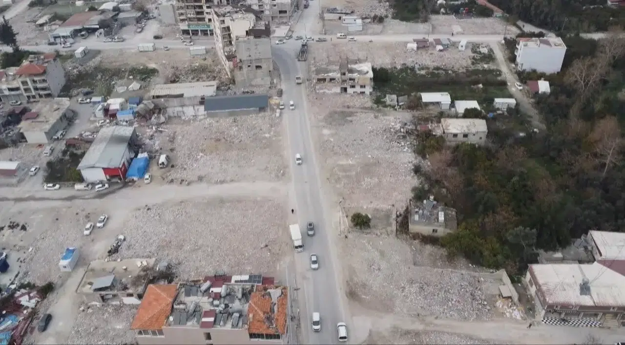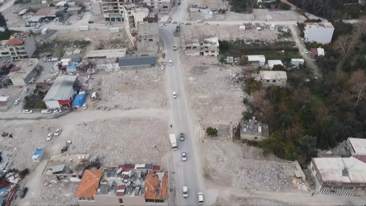 Depremin vurduğu Hatay’ın Samandağ ilçesinde enkazın yüzde 97’si kaldırıldı. Kaldırılan enkaz sonrası boş alanlar havadan görüntülendi.