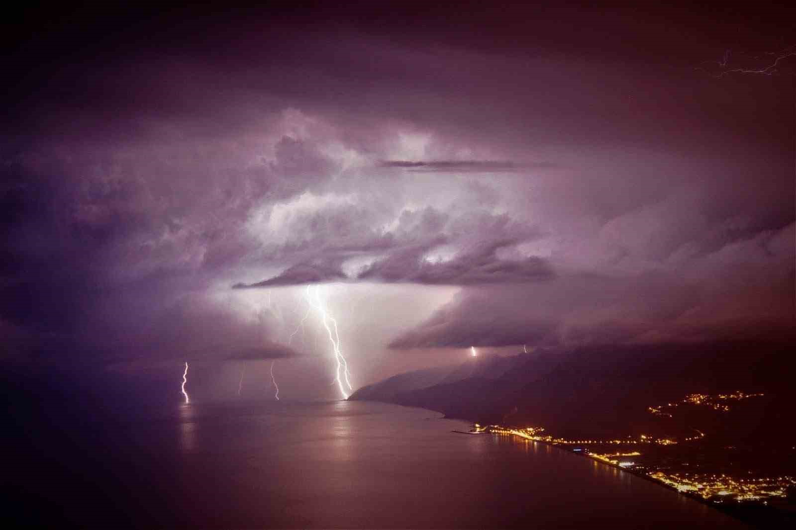 Samandağ ilçesinde gece saatlerinde peş peşe çakan şimşekler, geceyi gündüze çevirdi. Kentin üzerinde birbiri ardına çakan şimşekler geceyi aydınlatırken görsel şölen oluşturdu. Şimşeklerle beraber gelen yıldırım düşmeleri de yaşandı.