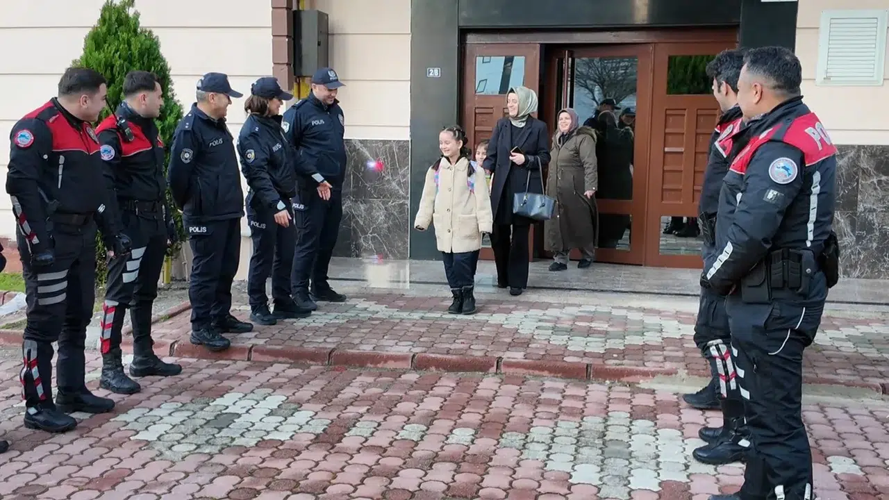 Samsun Emniyet Müdürlüğü ekipleri, 2024-2025 eğitim-öğretim yılı bahar döneminin ilk gününde şehit çocuğunu evinden alarak kortej eşliğinde okula bıraktı.