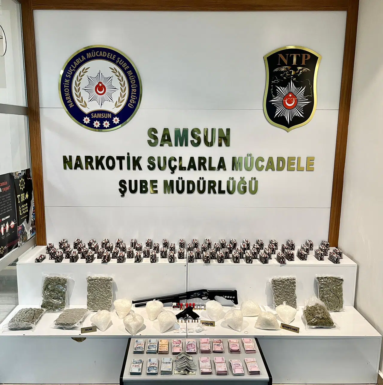 SAMSUN (AA) - Samsun'da yapılan uyuşturucu operasyonunda, 10 kilogram metamfetamin, 3 kilo 281 gram sentetik uyuşturucu ve bir miktar kokain ele geçirildi, 6 kişi gözaltına alındı.