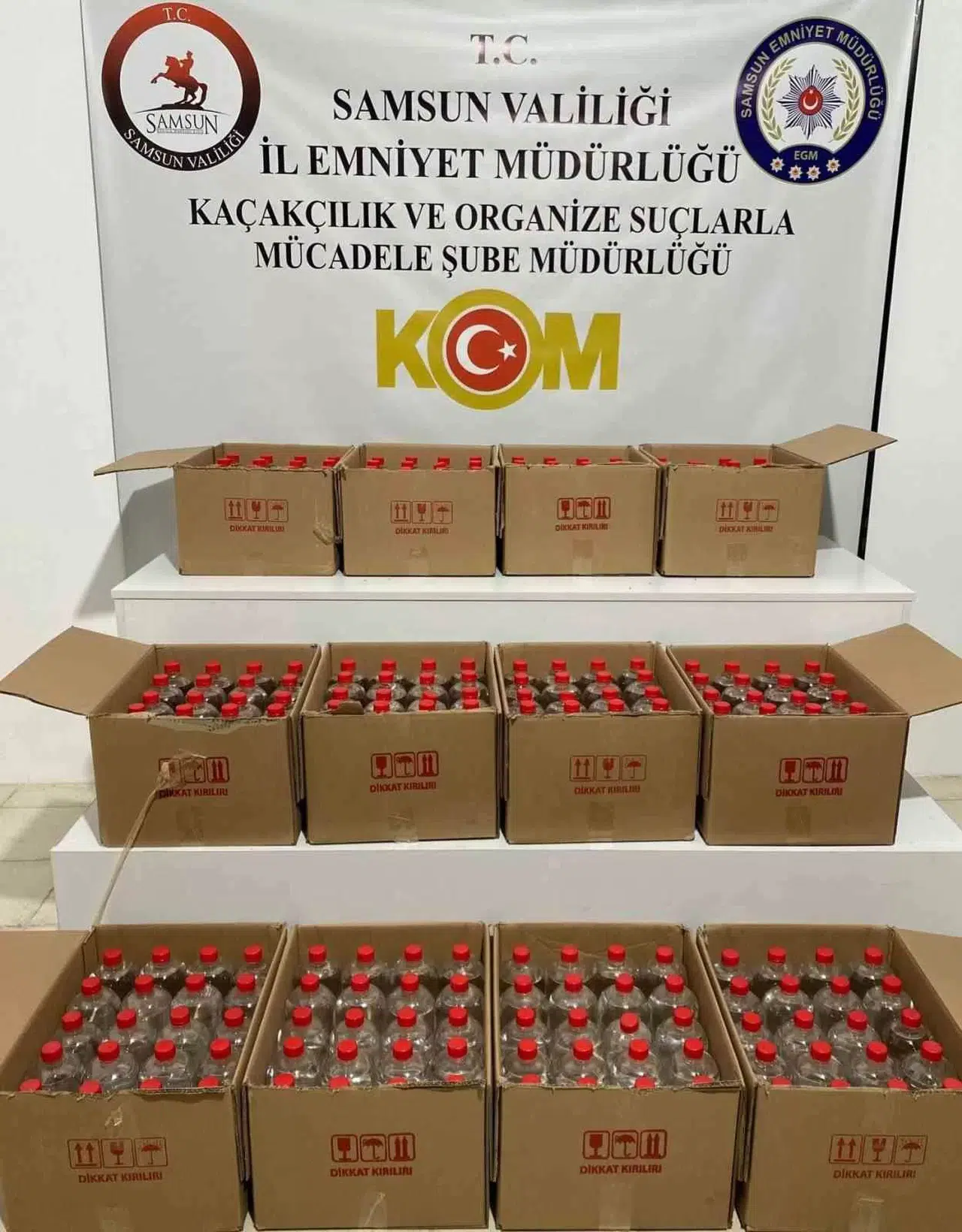 Edinilen bilgiye göre, Samsun Emniyet Müdürlüğü Narkotik Suçlarla Mücadele Şube Müdürlüğü ve Kaçakçılık ve Organize Suçlarla Mücadele Şube Müdürlüğü ekipleri, bir araçta yaptıkları aramada koli içindeki şişelerde 240 litre etil alkol ele geçirdi. Olayla ilgili bir kişi yakalandı. Soruşturma devam ediyor.