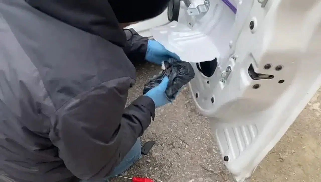 Aracın kapısının içine zulalanmış silah ele geçti