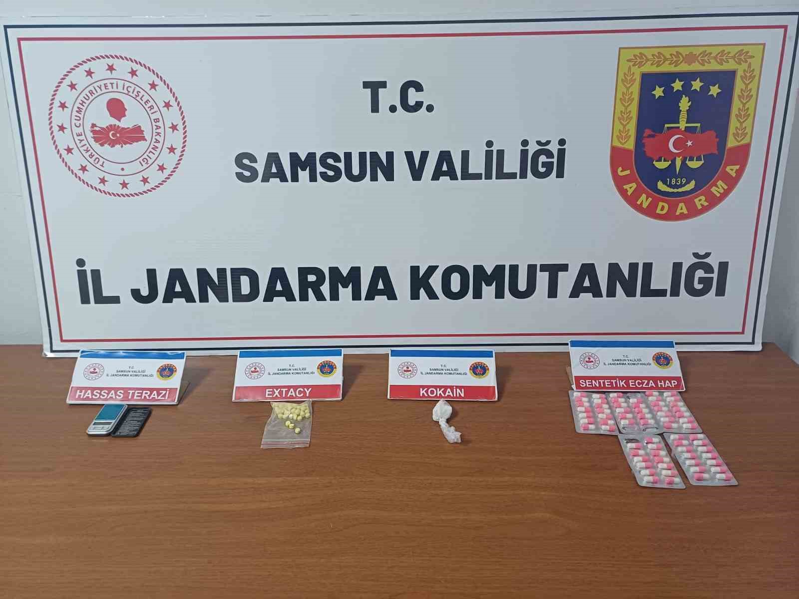 Edinilen bilgiye göre, İlkadım ilçesinde jandarma ekipleri tarafından uyuşturucu ve uyarıcı madde ticaretinin önlenmesine yönelik yapılan çalışmalarda Ö.F.M. (23), İ.E. (28) ve D.G. (27) isimli şahısların uyuşturucu madde ticareti yaptıkları belirlendi. Samsun İl Jandarma Komutanlığı Kaçakçılık ve Organize Suçlarla Mücadele Şube Müdürlüğü, İstihbarat Şube Müdürlüğü ve İlkadım İlçe Jandarma Komutanlığı ekiplerince şahısların evlerinde yapılan aramada 44 adet extacy, 20 gram kokain, 66 adet sentetik ecza hap ve 1 adet hassas terazi ele geçirildi. 3 kişinin gözaltına alındığı olayla ilgili soruşturma devam ediyor.