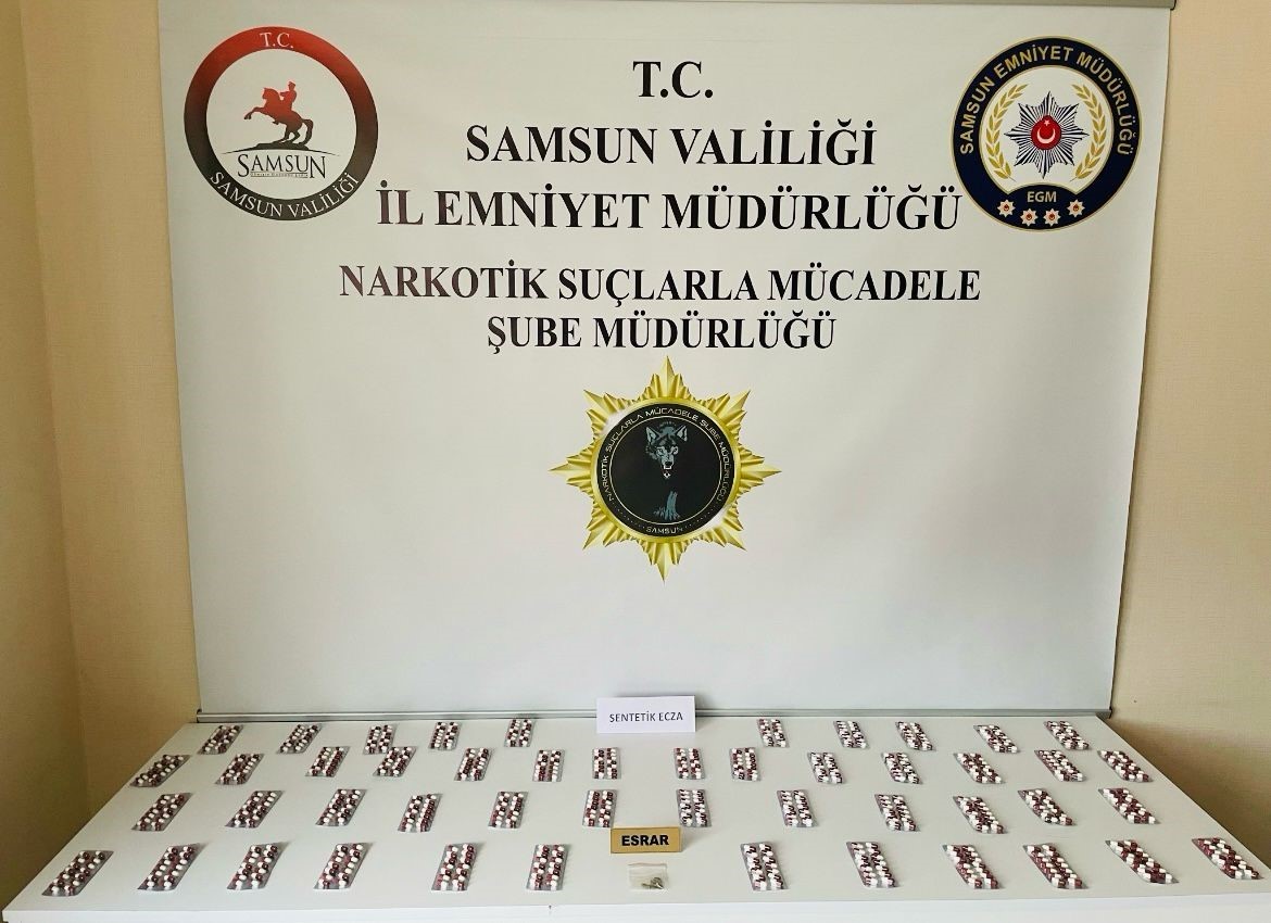 Samsun’da polis tarafından 672 adet sentetik ecza ele geçirildi, 1 kişi gözaltına alındı.