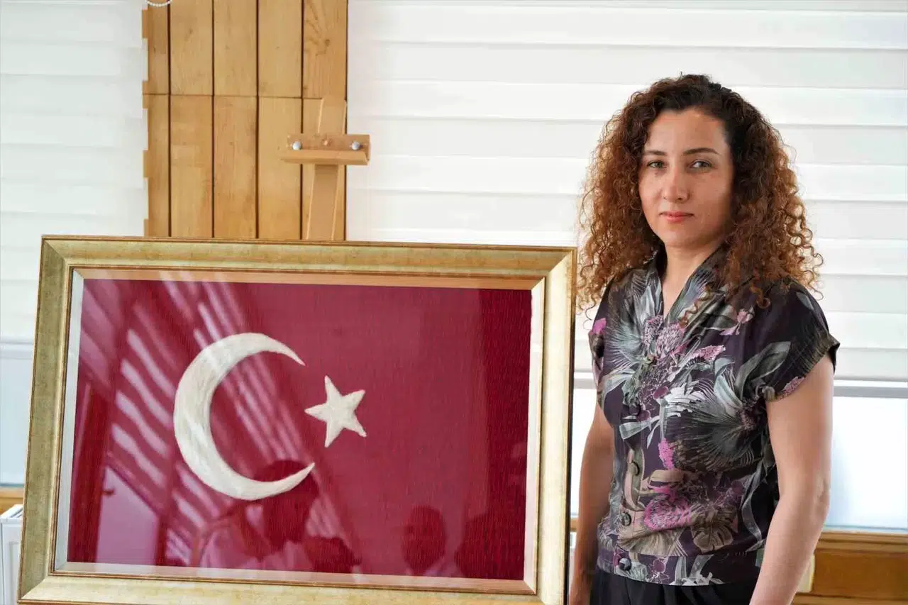 Samsun’da Hemşire, Alper Gezeravcı’nın Annesine Vermek İçin Kilim Dokuma Tekniği ile Türk Bayrağı Yaptı
