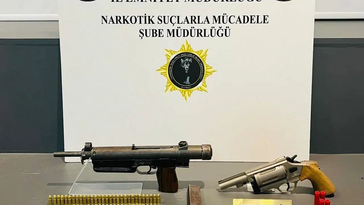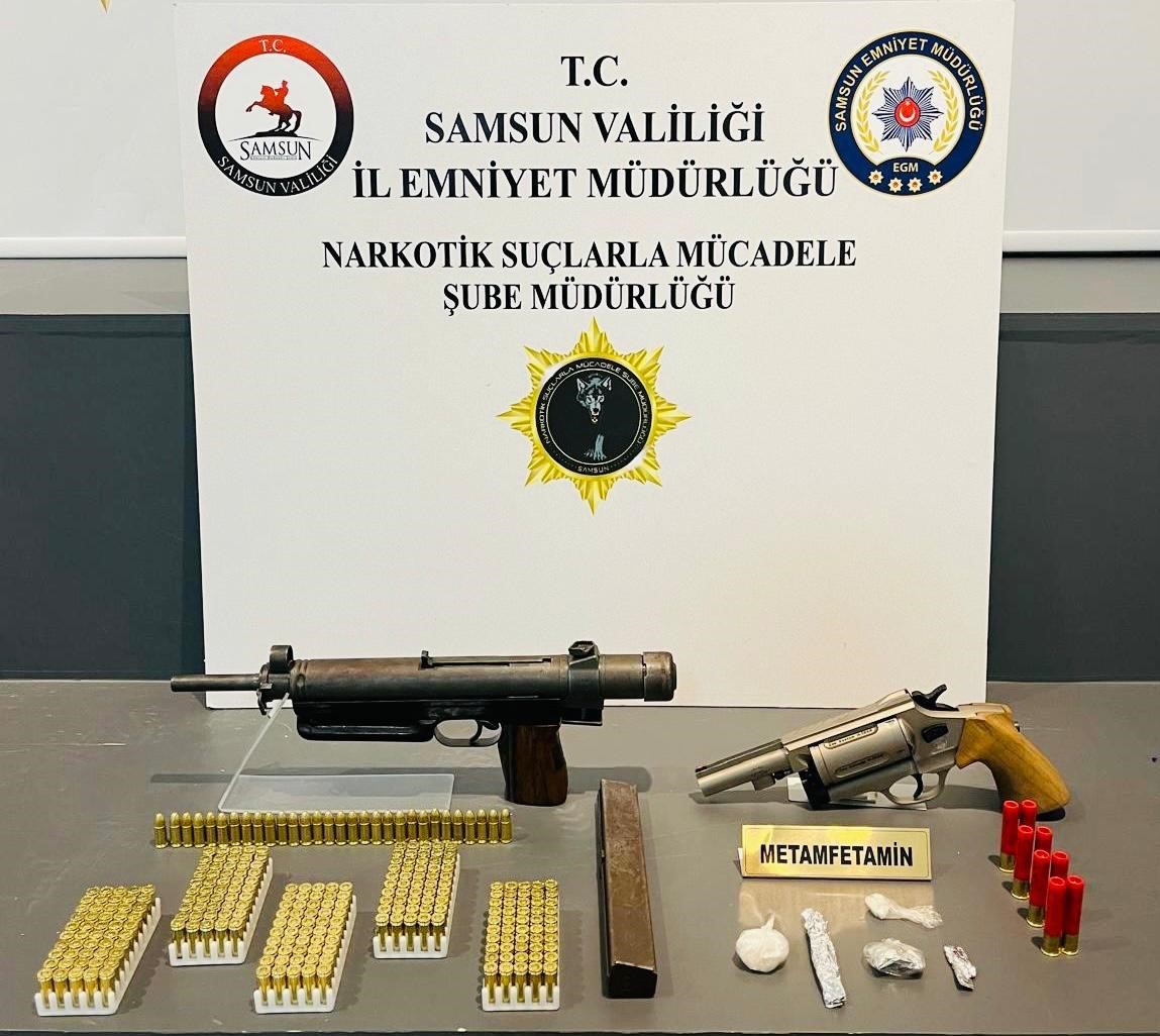 Samsun’da bir ikamete operasyon düzenleyen polis, makineli tabanca, uyuşturucu ve mermi ele geçirdi.