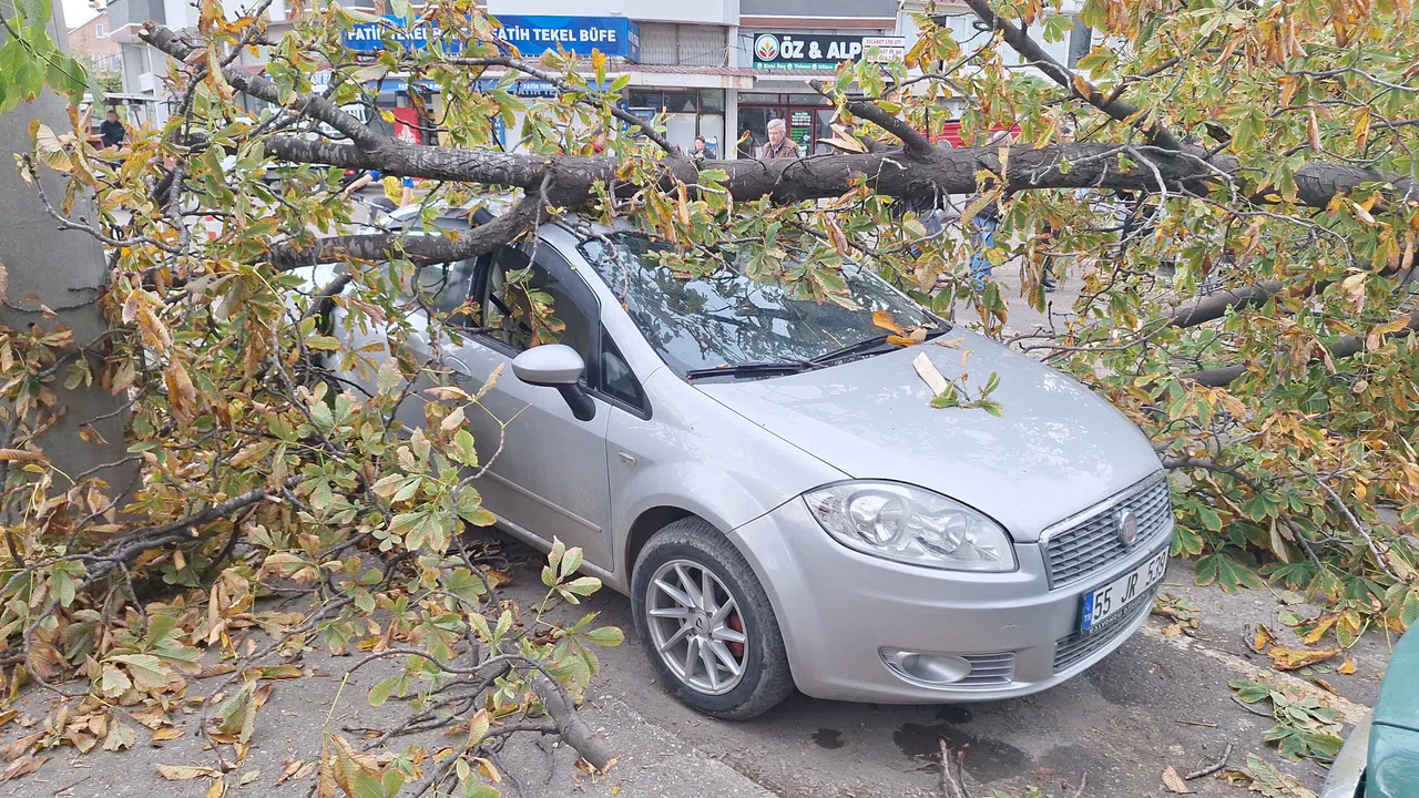 SAMSUN (AA) - Samsun'un Bafra ilçesinde şiddetli rüzgar nedeniyle devrilen ağaç, park halindeki iki otomobile zarar verdi.
