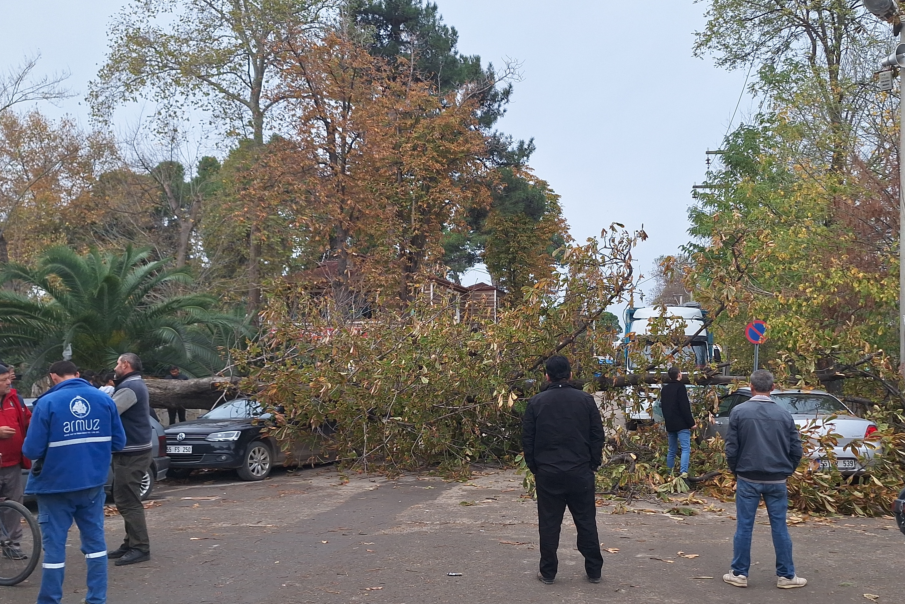 Ağaç, belediye ekiplerince kesilerek yoldan kaldırıldı. Araçlarda hasar oluştu.