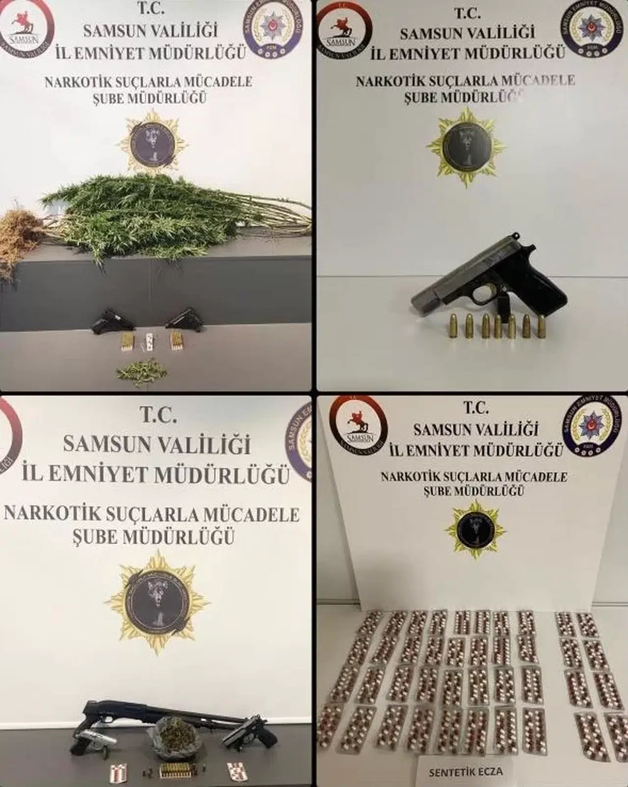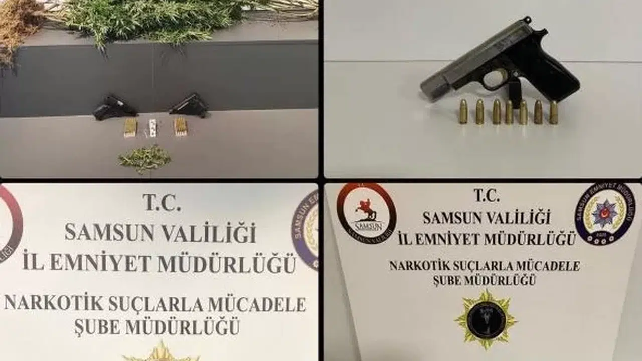 Edinilen bilgiye göre, Samsun Emniyet Müdürlüğü Narkotik Suçlarla Mücadele Şube Müdürlüğü ekipleri, İlkadım ve Atakum ilçelerinin farklı mahallelerinde operasyon düzenlendi. Operasyonda şüpheli 10 şahsın üzerlerinde, araçlarında ve ikametlerinde yapılan aramalarda, 471 adet sentetik ecza, 18,77 gram metamfetamin, 57,50 gram esrar, 14 kök kenevir bitkisi, 4 adet uyuşturucu kullanım aparatı, 2 adet ruhsatsız tabanca, 3 adet kurusıkı tabanca, 2 adet ruhsatsız pompalı tüfek ve 167 adet tabanca fişeği ele geçirilmiştir. Olayla ilgili 10 kişi gözaltına alındı. Soruşturma devam ediyor.