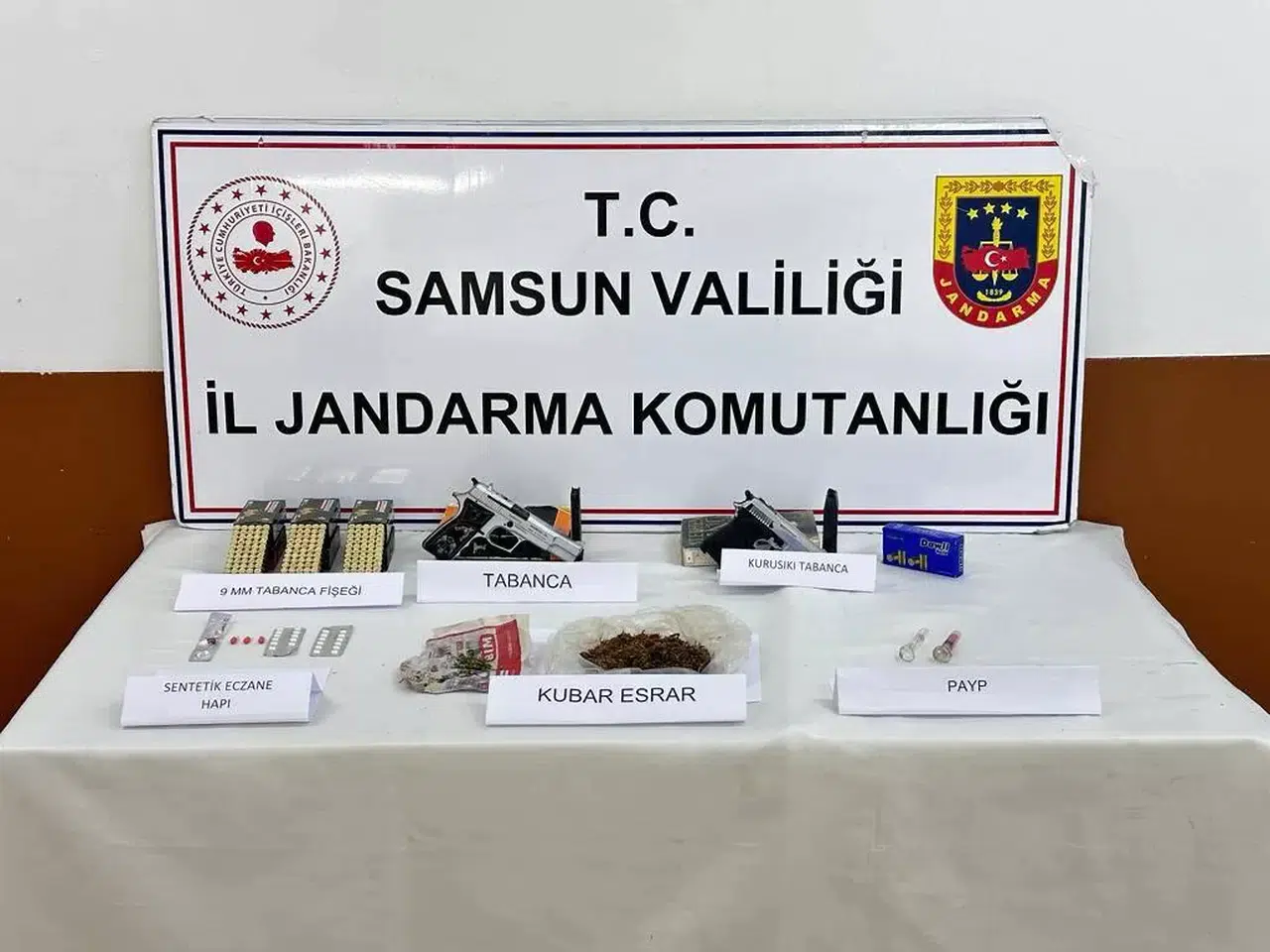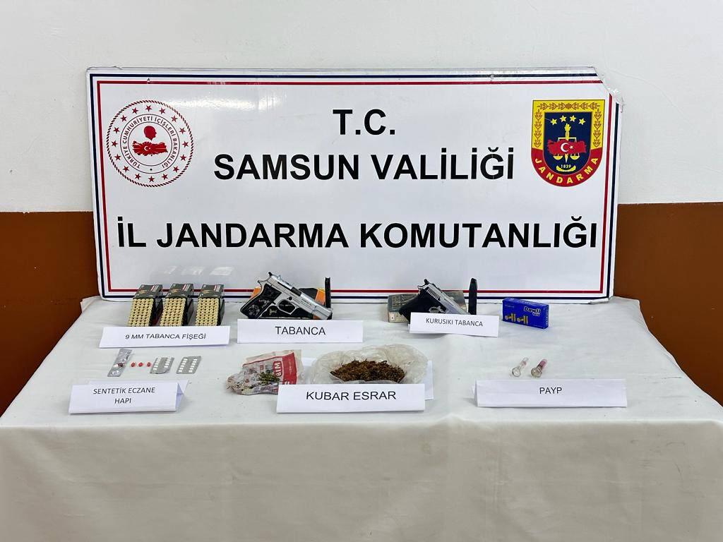 Ekipler, ikametlerdeki aramalarda, 27 sentetik ecza hap, 17 gram kubar esrar, 2 uyuşturucu kullanma aparatı, 1 ruhsatsız tabanca, 1 ruhsatsız kurusıkı tabanca ve 340 tabanca fişeğini ele geçirdi.