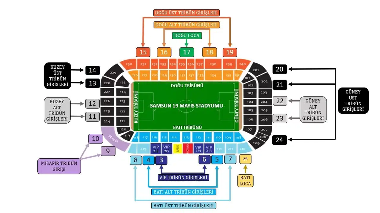 Öte yandan taraftarlara polis tarafından yapılan yazılı açıklamada, tribün giriş, çıkışlarının yer aldığı stadyumun krokisi de görsel olarak paylaşıldı.
