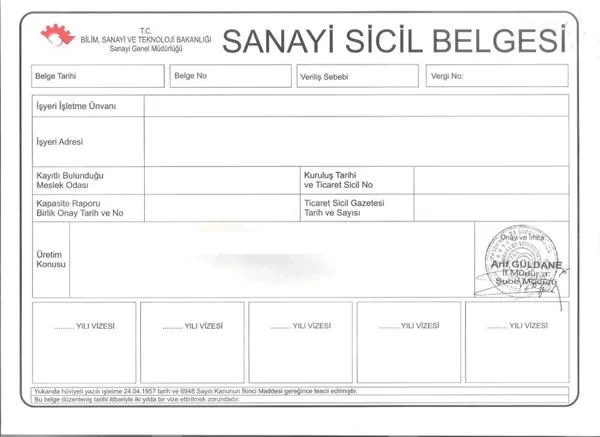 “Bilindiği üzere 6948 Sayılı Sanayi Sicili Kanunu’nun 5.Maddesi gereğince Sanayi Sicil Belgesi sahibi işletmelerin her yıl 01 Ocak ve 30 Nisan tarihleri arasında bir önceki yıla ait (Yıllık Ciro Bilgisi, Kapasite Kullanım Oranı Bilgisi, Çalışan Sayısı, Tüketilen Enerji, Üretim Şekli, Üretim Bilgisi ve Atık Madde Bilgilerini) yıllık işletme cetvellerini eksiksiz doldurarak sistem aracılığıyla internet ortamından online olarak bağlı bulundukları ilin Sanayi ve Teknoloji İl Müdürlüğüne göndermeleri gerekmektedir.