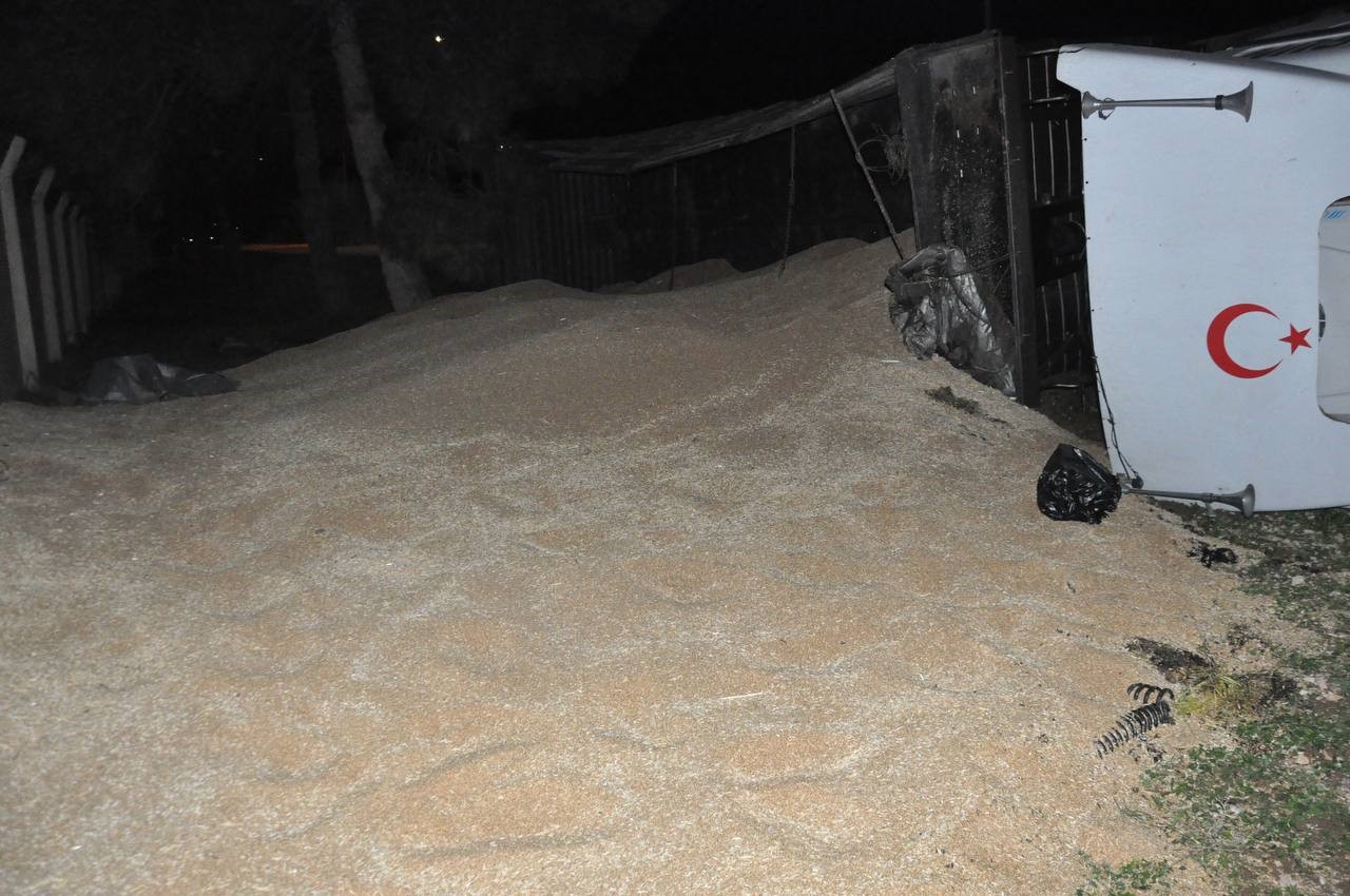 Şanlıurfa’da buğday yüklü tırın devrilmesi sonucu sürücü yaralandı.