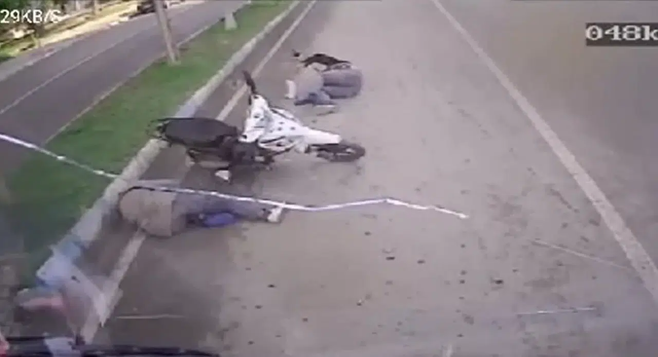 Şanlıurfa’nın Birecik ilçesinde şehir toplu taşıma otobüsünün motosikletle çarpışma anı kameraya yansıdı. Kazada iki kişi yaralandı.
