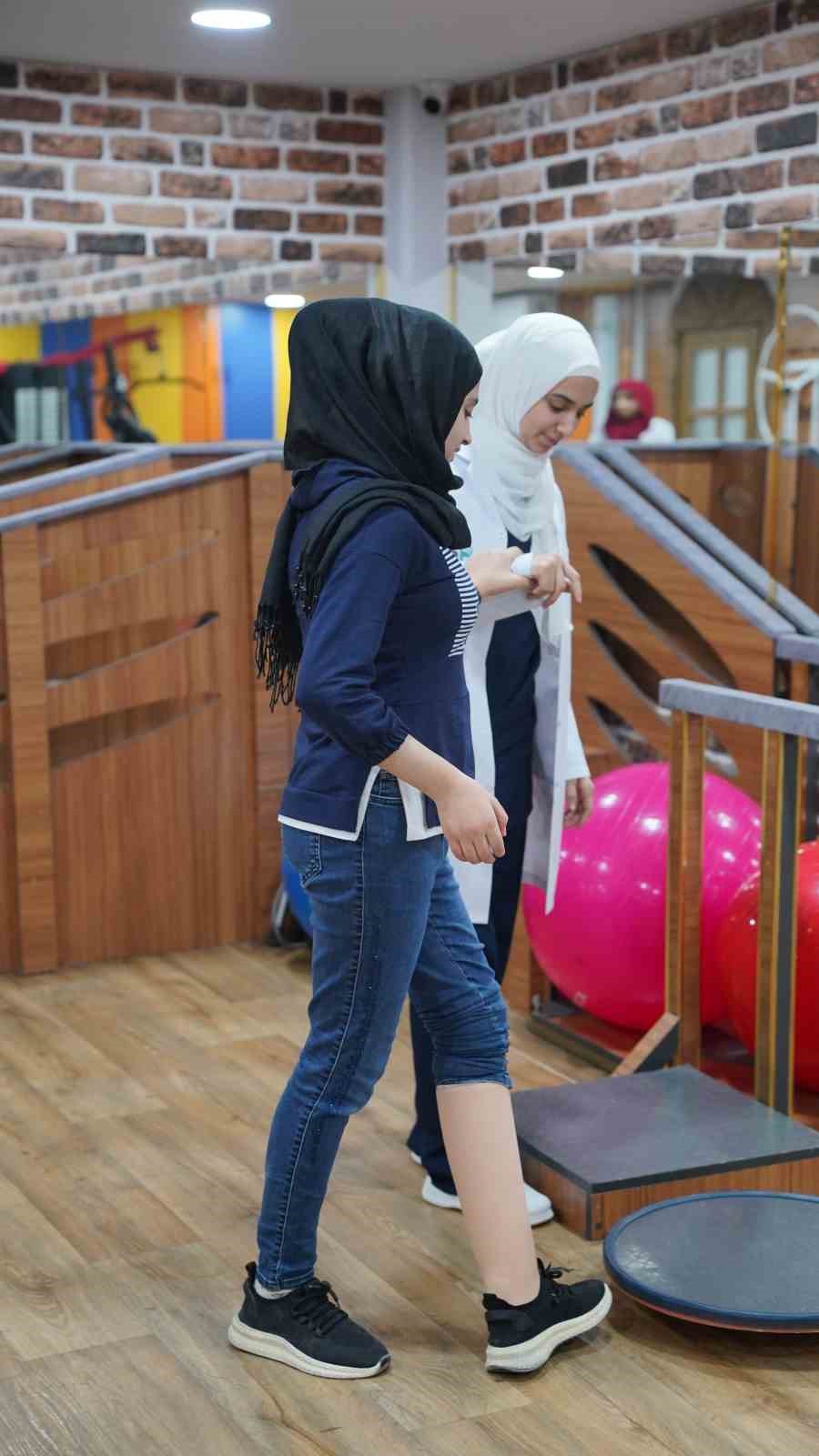 Fizyoterapist Renim Elşeyh ise Gine’yi muayene ettikten sonra güdük ucunda hassasiyet olduğunu, ampute olduktan sonra fizik tedavi görmediği için kaslarda zayıflık durumu yaşadığını hatırlatarak, “Bu yüzden protez yapma süreciyle birlikte fizik tedavi seanslarımızı başlattık. İlk kas kuvvetlendirme ile başlayıp daha sonra protez provası ile devam ettik. Ardından denge ve yürüyüş eğitimlerine ağırlık vermeye başladık” ifadelerini kullandı.