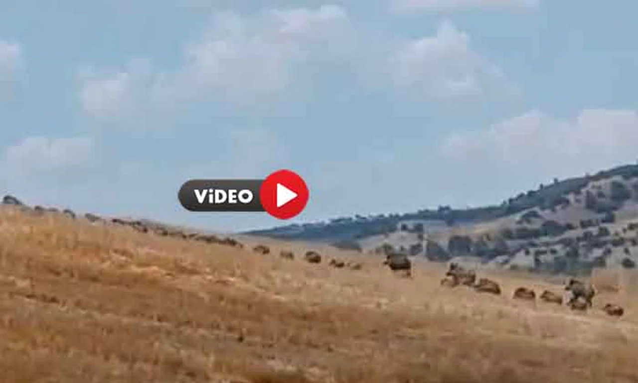 İlçeye bağlı Karakaya köyüne yakın bir noktada, arazide dolaşan bir vatandaş domuz sürüsüyle karşılaştı.