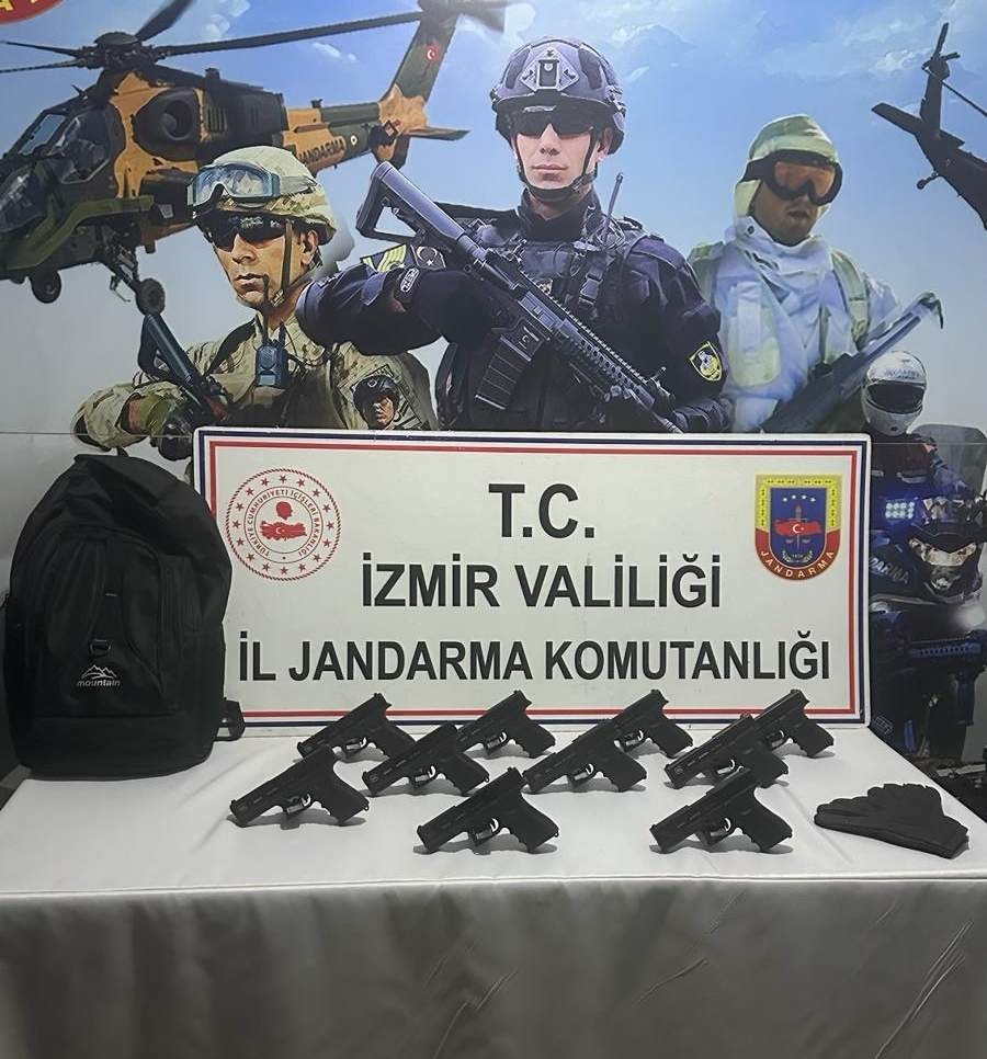 Bornova ilçesi Çiçekli Mahallesi’nde silah ticareti yapılacağı bilgisi üzerine, İzmir Cumhuriyet Başsavcılığının koordinesinde, İl Jandarma Komutanlığı İstihbarat Şube Müdürlüğü ve Bornova İlçe Jandarma Komutanlığı ekipleri tarafından belirlenen adrese operasyon düzenledi. Operasyonda 2 şahıs, 10 adet ruhsatsız tabanca ile birlikte yakalandı. Olayın devamında şahısların evlerinde yapılan aramalarda ise 1 adet ruhsatsız tabanca, tabancaya ait 2 adet şarjör ve 6 fişek ele geçirildi.