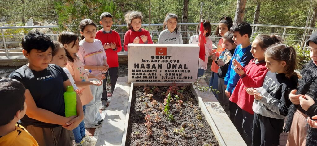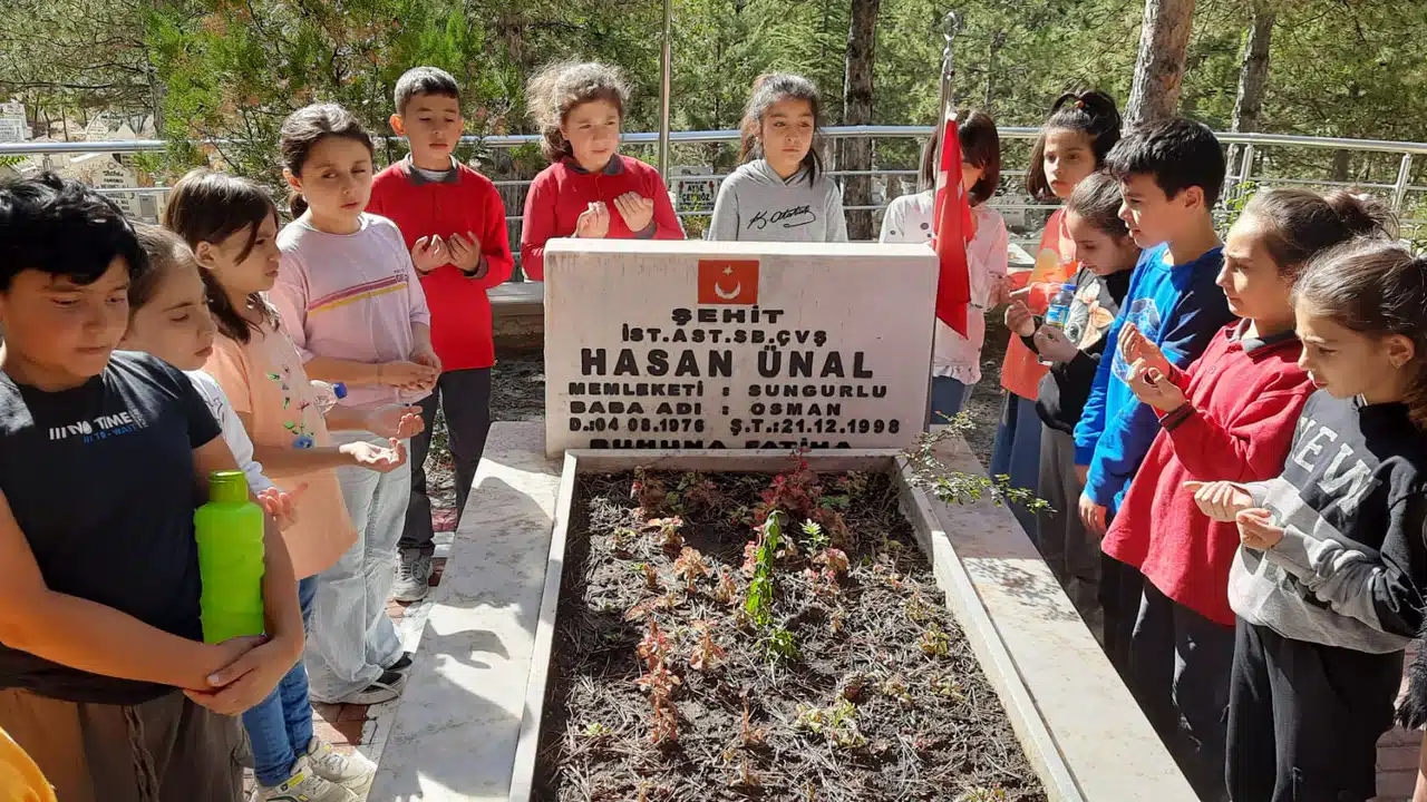 Sunguroğlu İlkokulundan ziyaret ile ilgili yapılan açıklamada “Vatan, millet ve bayrak sevgisinin en güzel anlatılacağı yerin şehitlikler olduğunu anlatmak için öğrencilerle birlikte Sungurlu Karşıyaka Mezarlığında bulunan Şehitliğe ziyarette bulundular. Vatan toprağının her zerresinde emeği olan şehitlerimizin ziyaret edilmesi şehit ve şehitlik kavramının genç nesillerce daha iyi anlaşılabilmesi için şehitliğimizi ve şehitlerimizi ziyaret ettik. Öğrencilerimiz, ülkemizin bekası, milletimizin huzur ve güvenliği uğrunda görevleri başında can veren şehitlerimizin kabirlerini dolaşarak dua ettiler. Öğretmenlerimiz "Şehitliğimizi ziyaret edip, şehitlerimizi kabirleri başında dualar ile bir kez daha rahmet ve şükranla andık. Aziz şehitlerimizin ruhları şad, mekanları cennet olsun. Bu mukaddes topraklar üzerinde yaşayabiliyorsak vatanı için korkmadan canını veren şehitlerimiz sayesindedir. Bu vatan toprakları uğruna canını feda eden tüm şehitlerimizi rahmet ve minnetle anıyor, kederli ailelerine de Rabbimden sabır diliyorum” ifadelerine yer verildi. (Sümeyra Özdoğan)