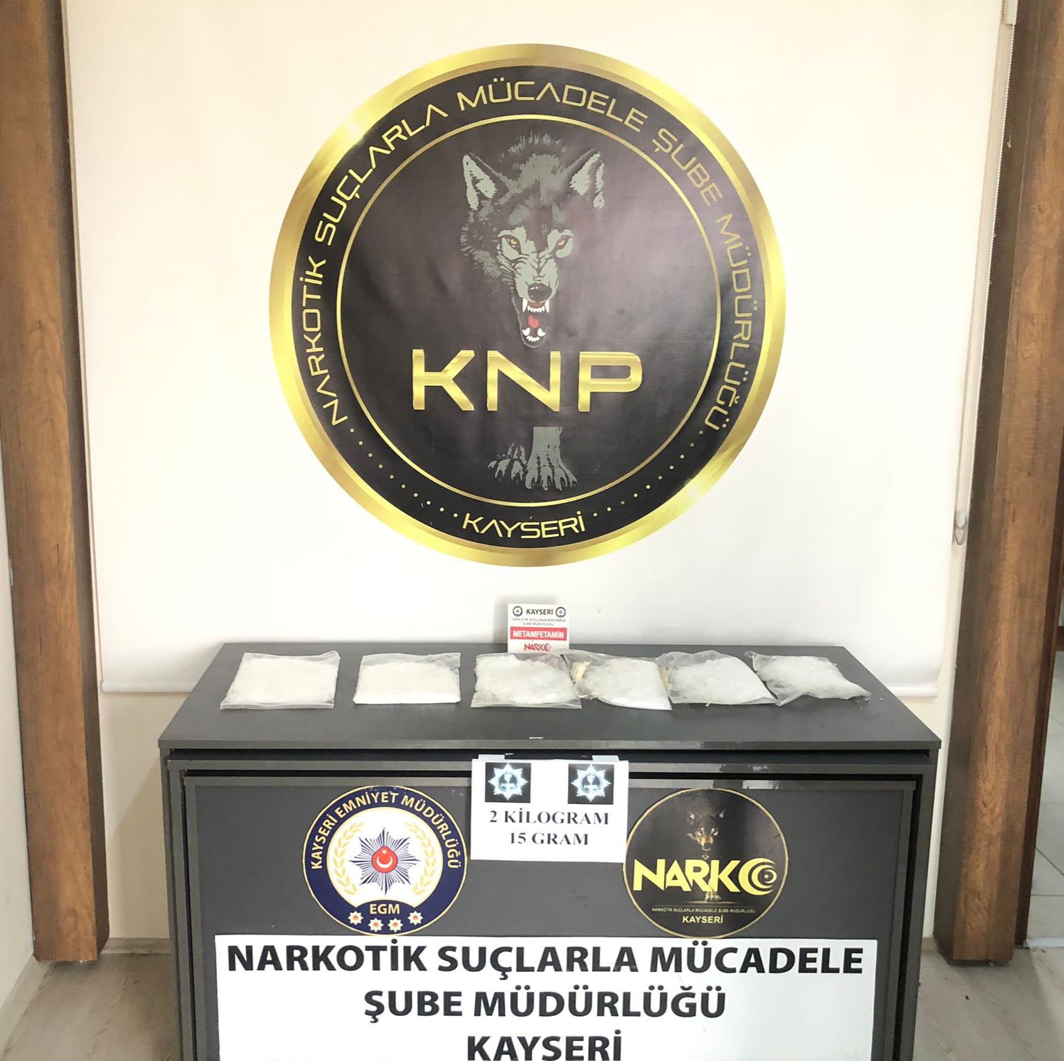 Edinilen bilgiye göre Narkotik Suçlarla Mücadele Şube Müdürlüğü ve İstihbarat Şube Müdürlüğü ekiplerince yapılan çalışmalarda A.M. ve H.C.’nin Doğu illerinden Kayseri’ye yüklü miktarda uyuşturucu madde getirecekleri bilgisi alındı. Yapılan çalışmalar sonucunda A.M. ve H.C. yakalanırken, ekiplerce yapılan aramalarda sehpa içerisine zulalanmış 2 kilo 15 gram uyuşturucu madde ele geçirildi.