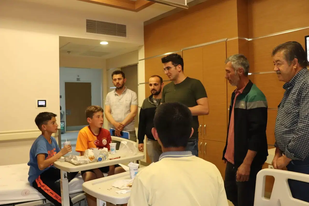 Manisa’nın Selendi ilçesinde okul servisi ile kapalı kasa kamyonetin çarpışması sonucu meydana gelen trafik kazasında 9 öğrenci hafif şekilde yaralanırken Selendi Kaymakamı Halil İbrahim Okumuş, öğrencileri hastanede ziyaret etti.