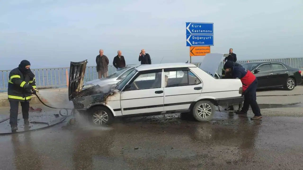 Kastamonu’nun İnebolu ilçesinde seyir halindeki Tofaş marka otomobilin motor kısmında çıkan yangın itfaiye ekipleri tarafından söndürüldü.