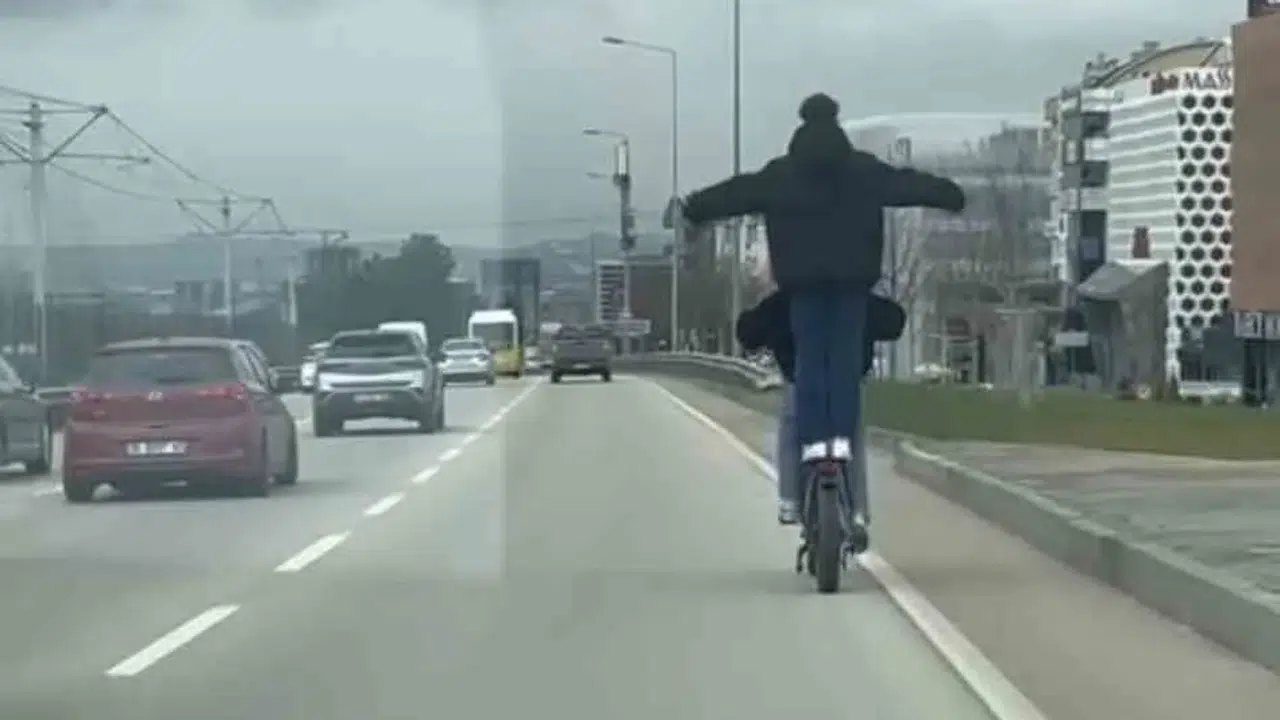 Gülümseten görüntüler merkez Nilüfer ilçesi İzmir Yolu Caddesinde kayda alındı. Bisiklet ile seyir halinde olan gencin arkasında bulunan yolcu bir anda kendisini kuş zannetti. Kollarını açtıktan sonra çırpan genç komik görüntüler oluşturdu. İlginç anlar, diğer sürücüler tarafından saniye saniye kaydedildi.