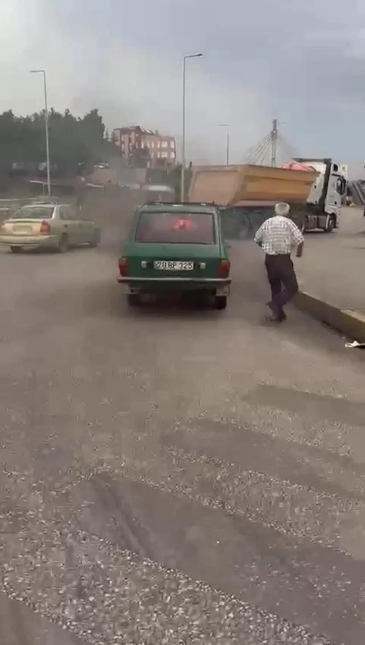 Olay, Demir Çelik Kavşağında meydana geldi. Sürücüsünün ismi öğrenilemeyen 78 BP 325 plakalı otomobil seyir halindeyken motor kısmından alev aldı. Durdurduğu aracından inen sürücünün yardımına diğer sürücüler yetişti. Kısa sürede büyüyen alevler yangın tüpleriyle söndürüldü.