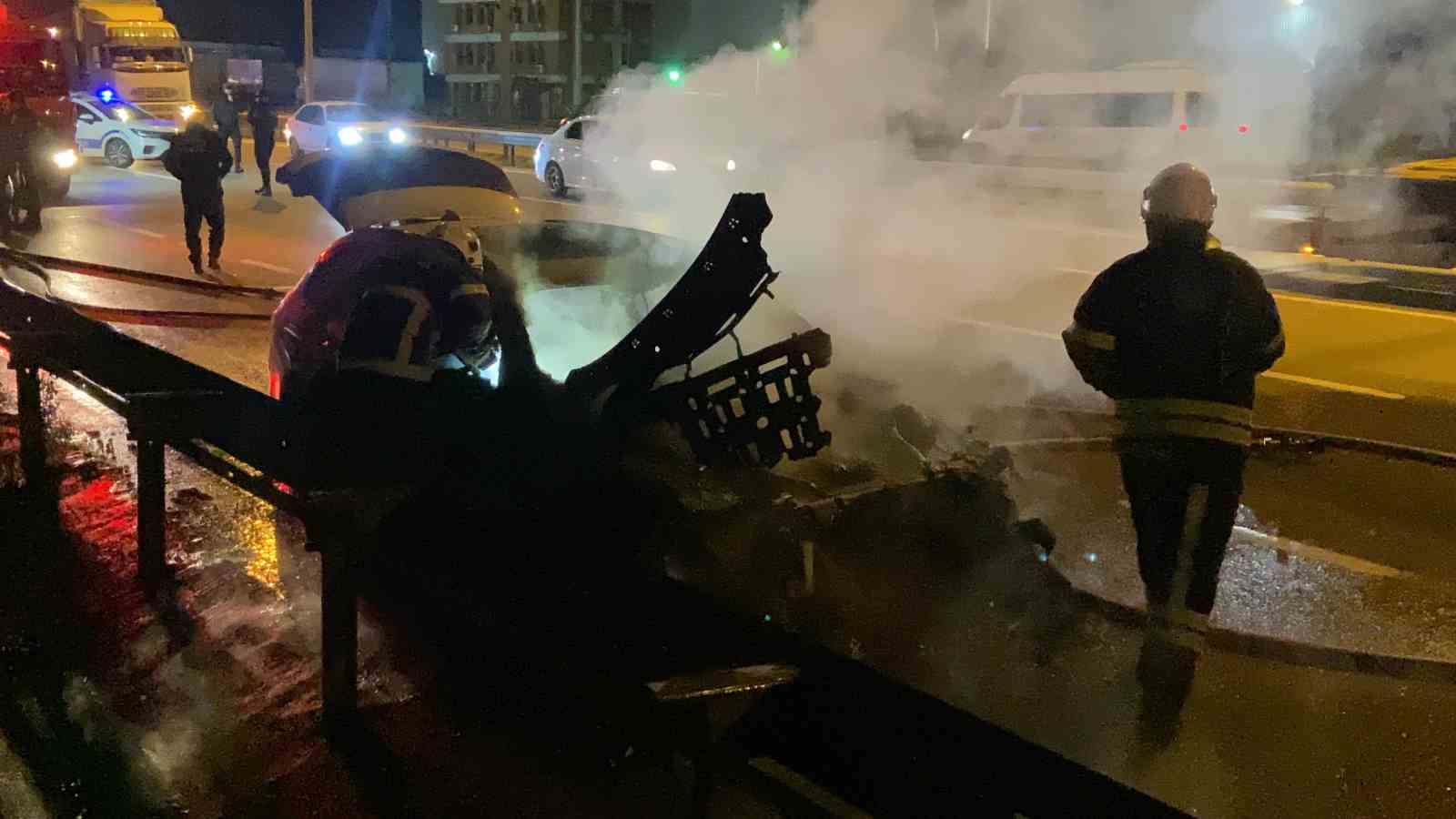 Kocaeli’nin Çayırova ilçesinde seyir halindeki otomobil alev alev yandı. İtfaiye ekiplerince yangın söndürülürken otomobil kullanılamaz hale geldi.