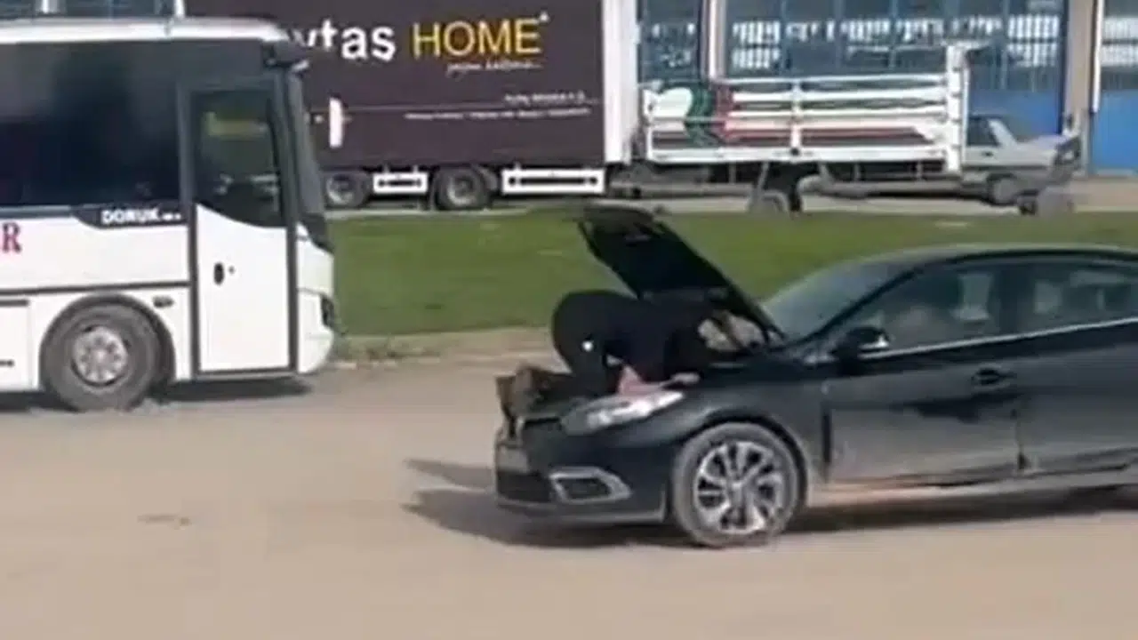 Olay, Sinanbey Mahallesi Metal Sanayi’de meydana geldi. Henüz ismi belirlenemeyen oto tamircisi, aracın motor kısmındaki arızayı bulmak için ilginç ve tehlikeli bir yola başvurdu. Sürücü yönetimindeki seyir halinde olan aracın motor kısmına oturan oto tamircisi, arızayı bulmak için yoğun çaba sarf etti. Tamircinin motor kısmı üzerinde oturup metrelerce seyretmesi amatör kameraya saniye saniye yansıdı.