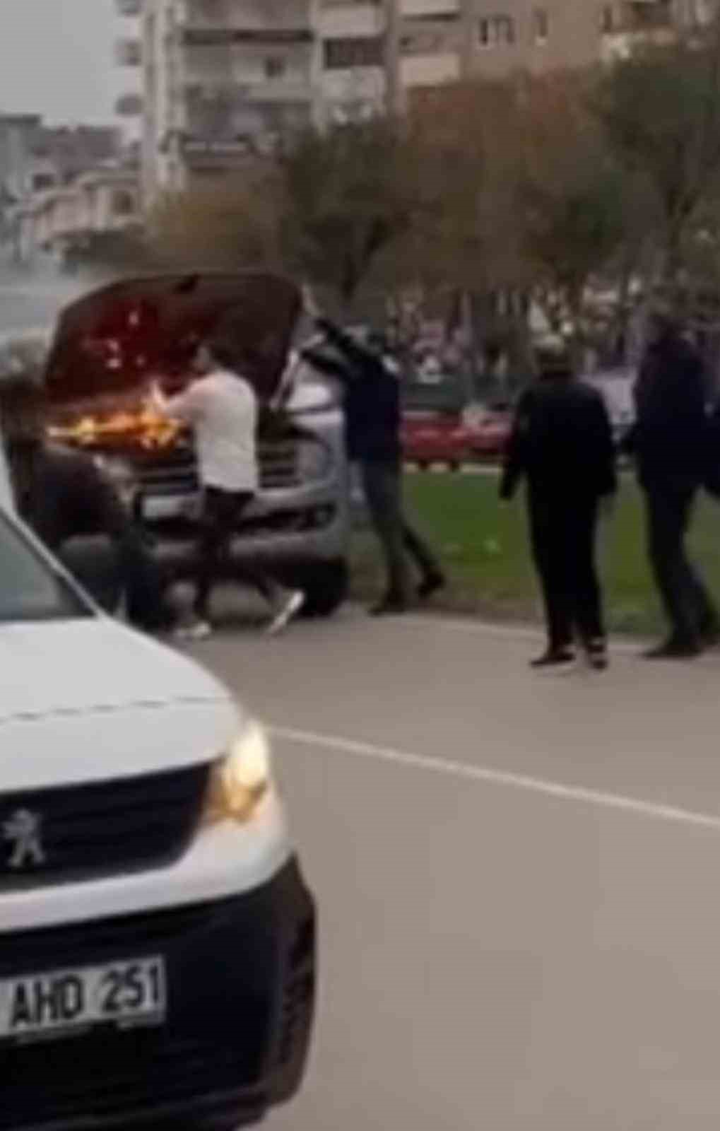 Olay, merkez Nilüfer ilçesi Fatih Sultan Mehmet Mahallesi mevkiinde meydana geldi. Cadde üzerinde seyir halindeki otomobil sürücüsü, aracın motor kısmından dumanların yükseldiği görünce hemen frene bastı. Araçtan hızla aşağı inen sürücü kaputu açtığında aracın yandığını gördü. Durum üzerine trafikteki diğer sürücülerde yanan araca müdahale etmek için eline aldıkları yangın tüpüyle alevleri söndürdü. Korku dolu anlar kameraya yansırken, olayla ilgili tahkikat başlatıldı.