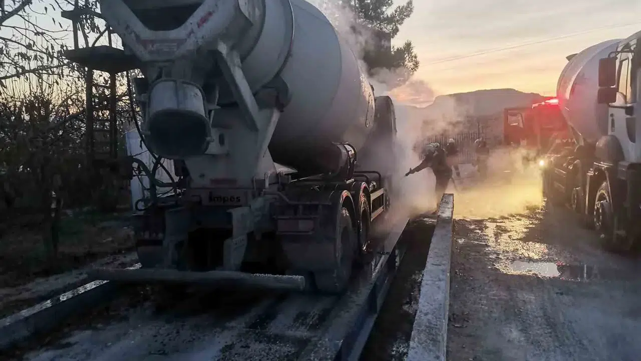 Seyir Halindeki Beton Mikseri Alev Alev Yandı