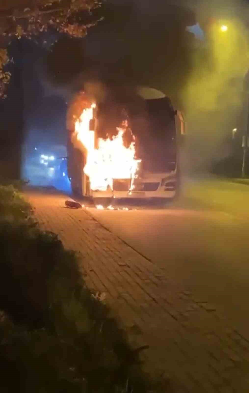 Seyir Halindeki Servis Otobüsü Alev Alev Yandı