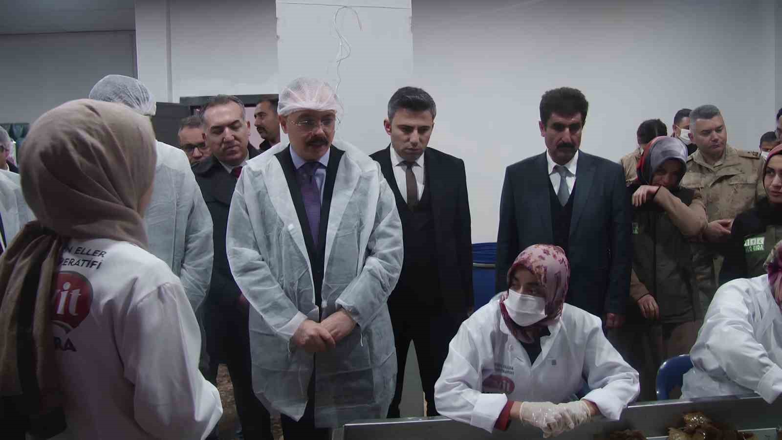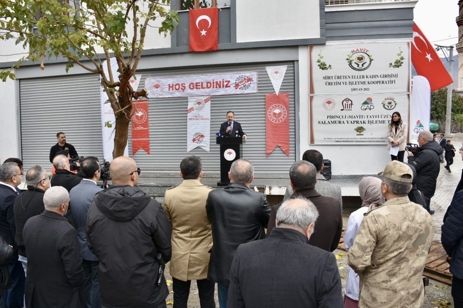Siirt Valisi Dr. Kemal Kızılkaya, GAP Başkanı Dr. Hasan Maral ile birlikte Şirvan’ın Pirinçlik köyü Üreten Eller Kadın Kooperatifi Tayfi Üzüm Yaprağı Salamura Tesisini ziyaret etti.