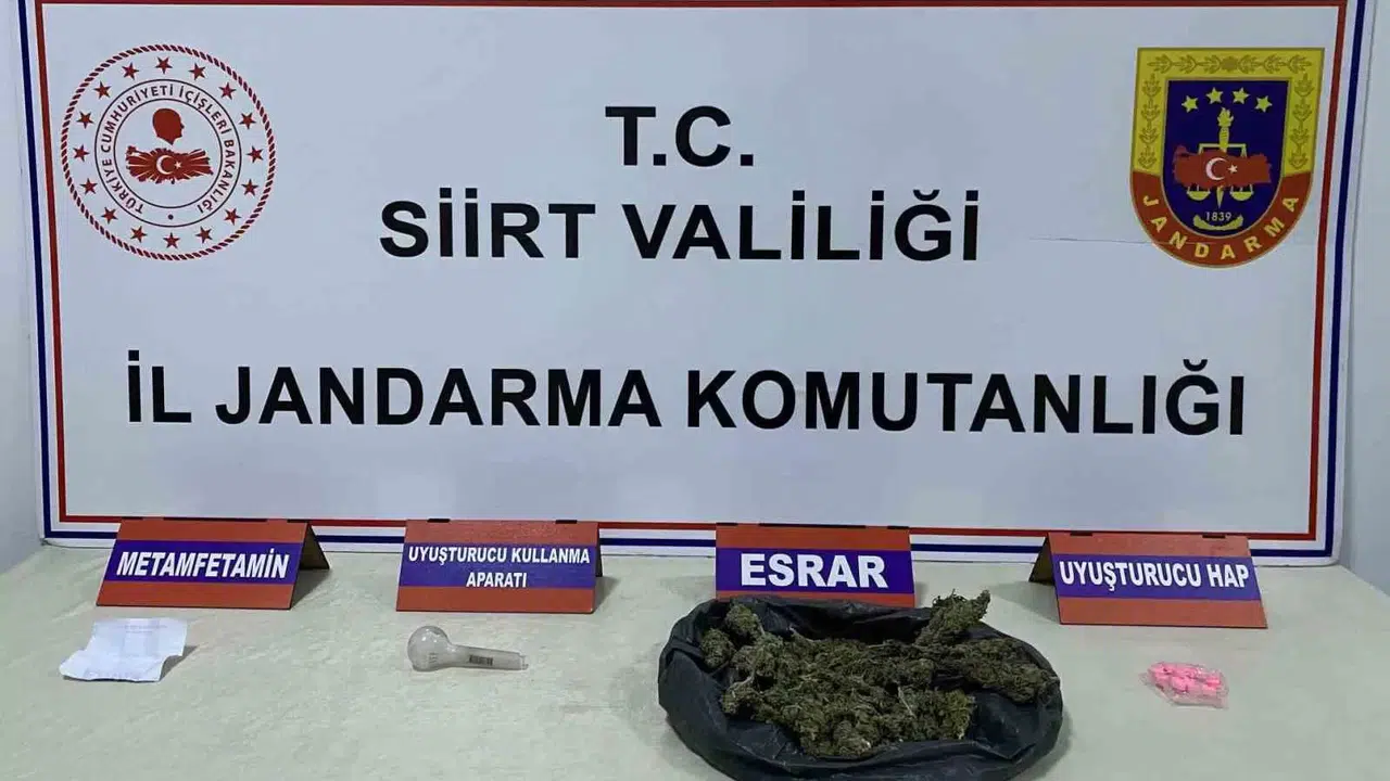 Siirt İl Jandarma Komutanlığı Narkotik Suçlarla Mücadele Şube Müdürlüğü görevlilerince Kurtalan ilçesinde icra edilen yol kontrol faaliyetinde, 3 araçta yapılan kontrollerde 156 gram kubar esrar, 4 gram metamfetamin, 14 adet extasy, 1 adet uyuşturucu kullanma aparatı ele geçirildi.