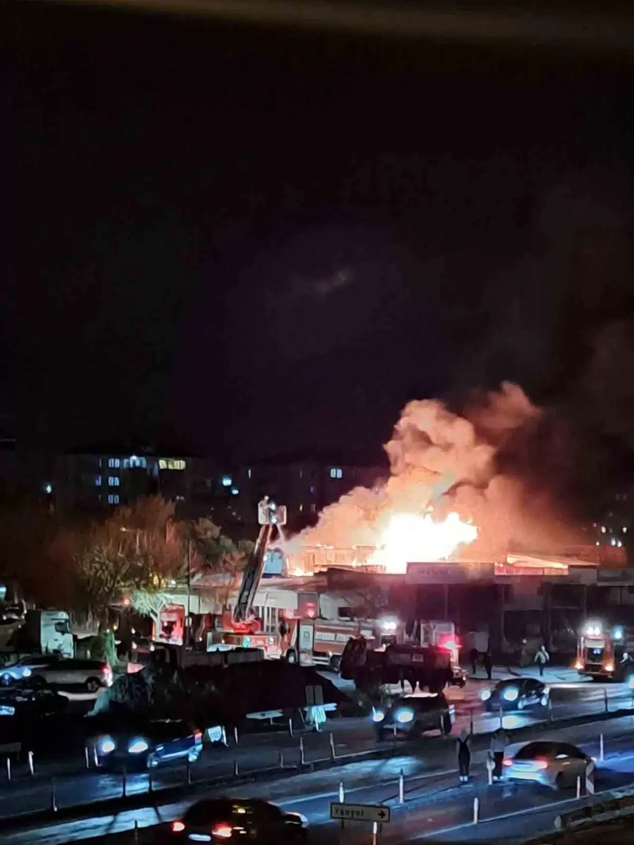Silivri’de D-100 Karayolu üzerinde bulunan bir yapı marketin çatısında çıkan yangın, rüzgarın etkisiyle hızla büyüdü. Silivri İtfaiyesi’nin müdahalesiyle kısa sürede söndürülen yangında maddi hasar meydana gelirken, alevler cep telefonu kamerasına yansıdı.