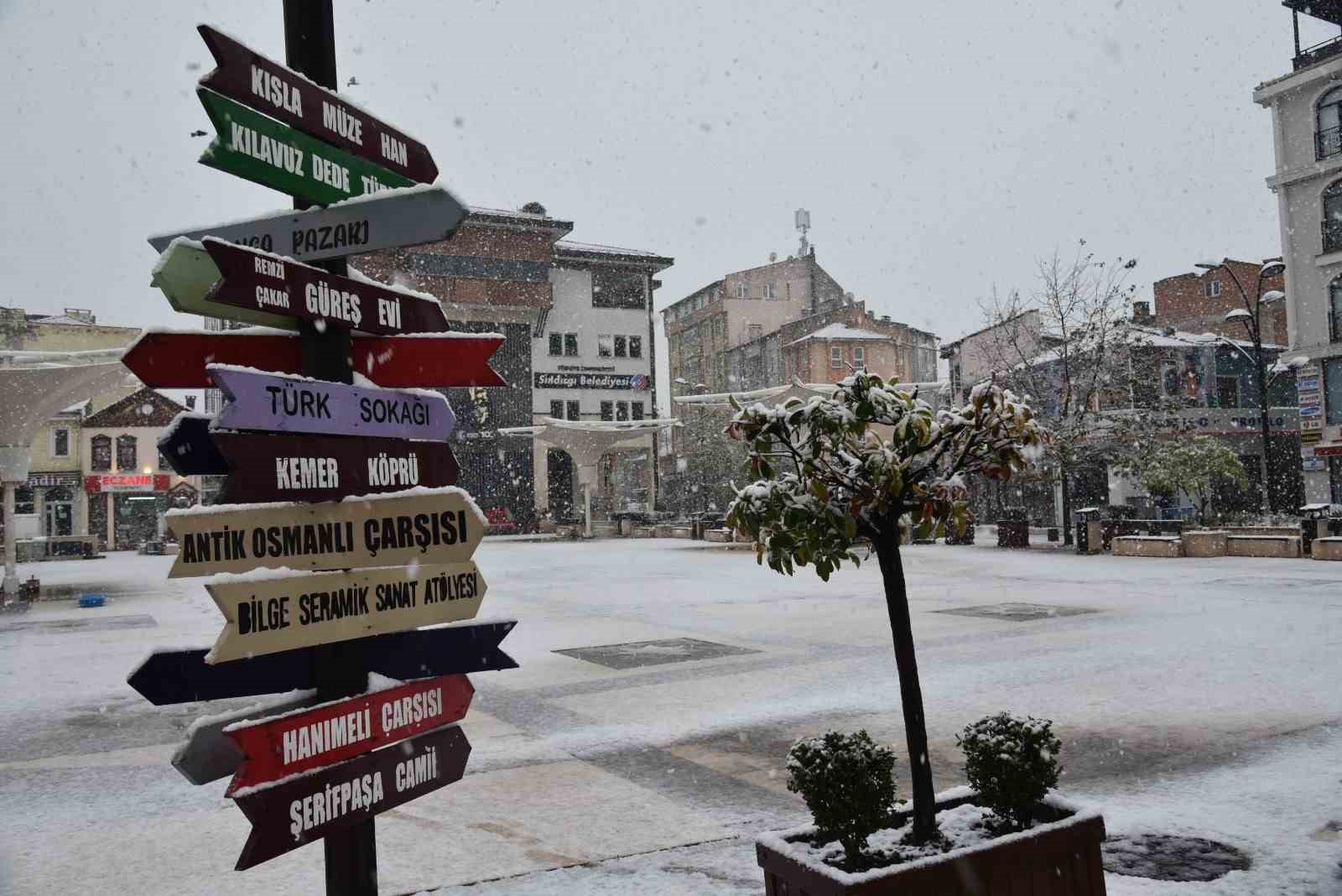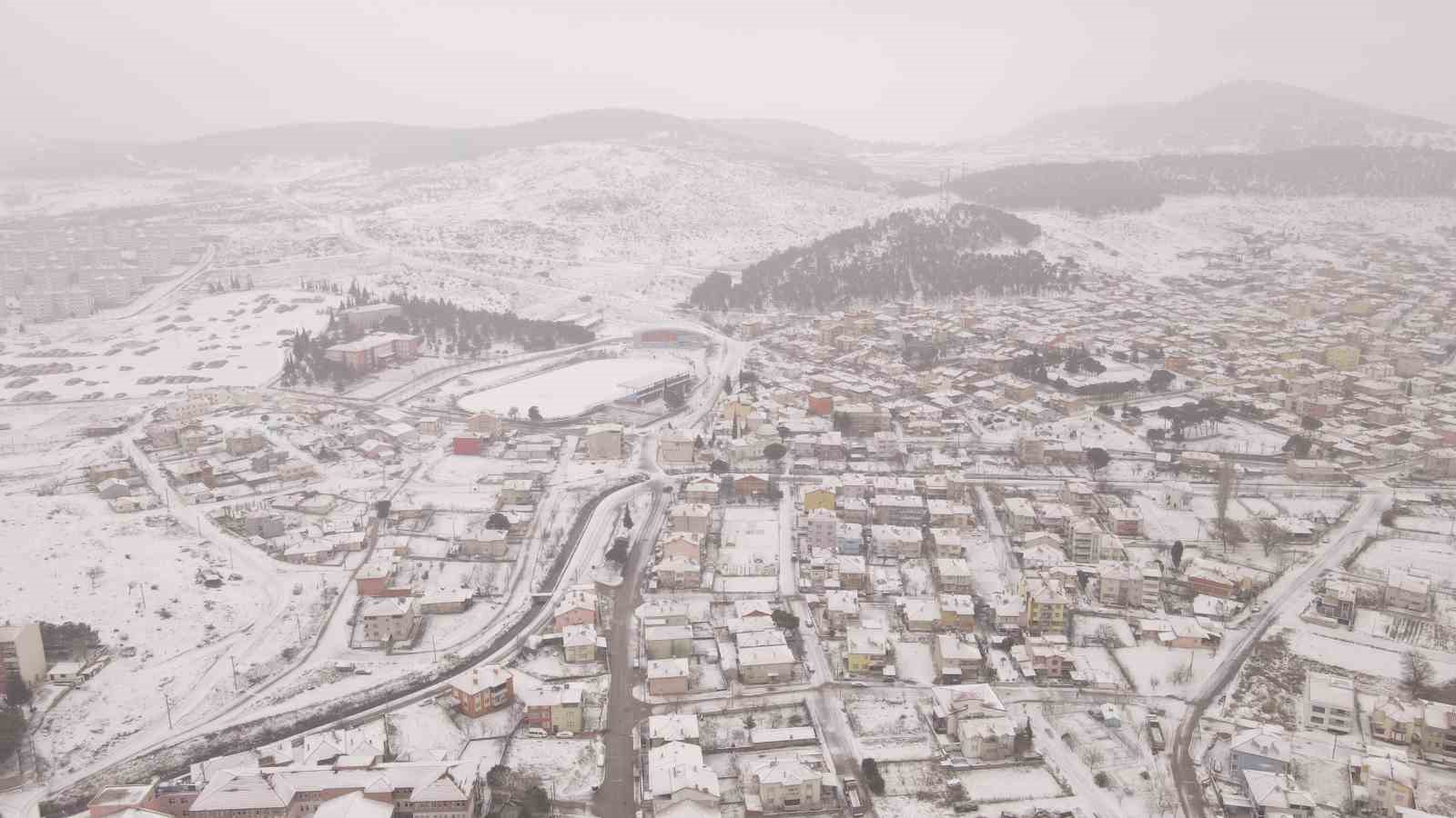 Balıkesir’in Sındırgı ilçesinde yüksek rakımlı mahallelerde gece, ilçe merkezinde ise gündüz saatlerinde başlayan kar yağışı ilçeyi beyaza bürüdü. İlçe merkezi drone ile görüntülendi.