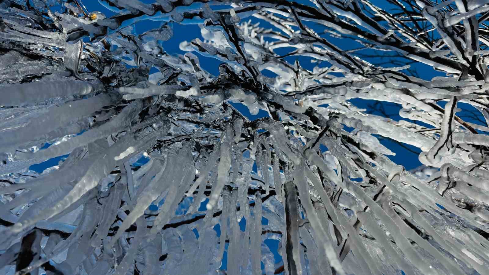 Şırnak’ta Ağaçlarda Buz Sarkıtları Oluştu