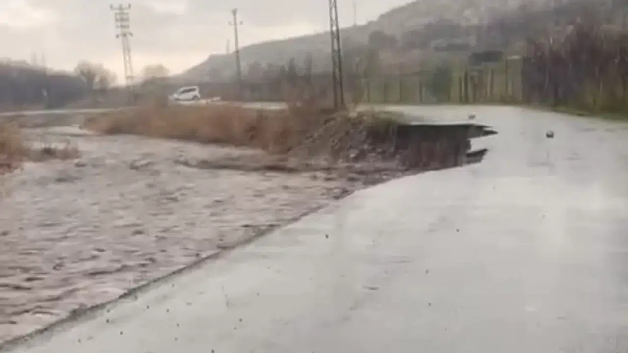 Şırnak’ın Silopi ilçesinde etkili olan sağanak yağışla birlikte dereler taştı, asfalt yolun bir kısmı çöktü.