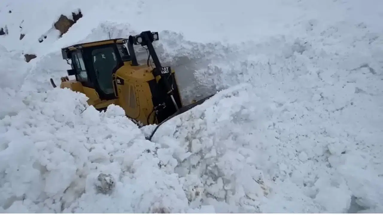 Şırnak’ın Beytüşşebap ilçesinde karla mücadele çalışmaları aralıksız sürerken, kar kalınlığı yolu açmaya çalışan iş makinasının boyunu aştı.