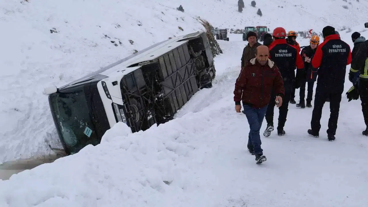 Sivas’ta Cenaze Yakınlarını Taşıyan Otobüs Devrildi: 20 Yaralı