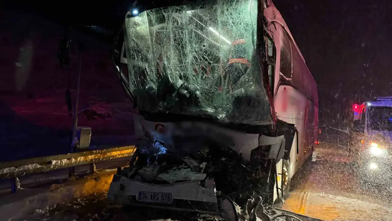 Sivas’ta bir yolcu otobüsü, yoğun kar yağışı nedeniyle kayganlaşan yolda tıra arkadan çarptı. Kazada 1’i ağır 13 kişi yaralandı.