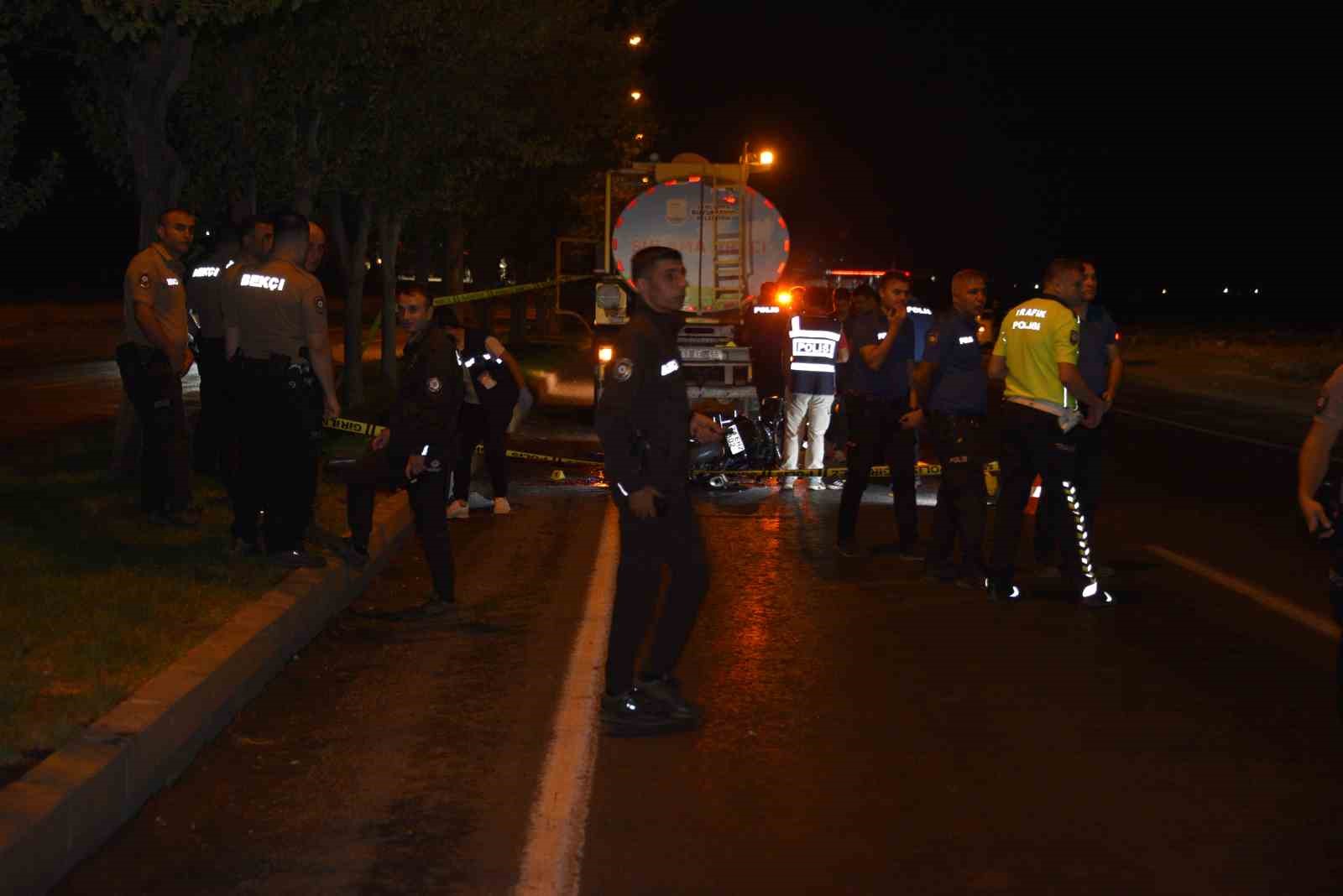 Şanlıurfa’nın Siverek ilçesinde sulama yapan tankerle çarpışan motosikletteki iki kişi hayatını kaybetti.