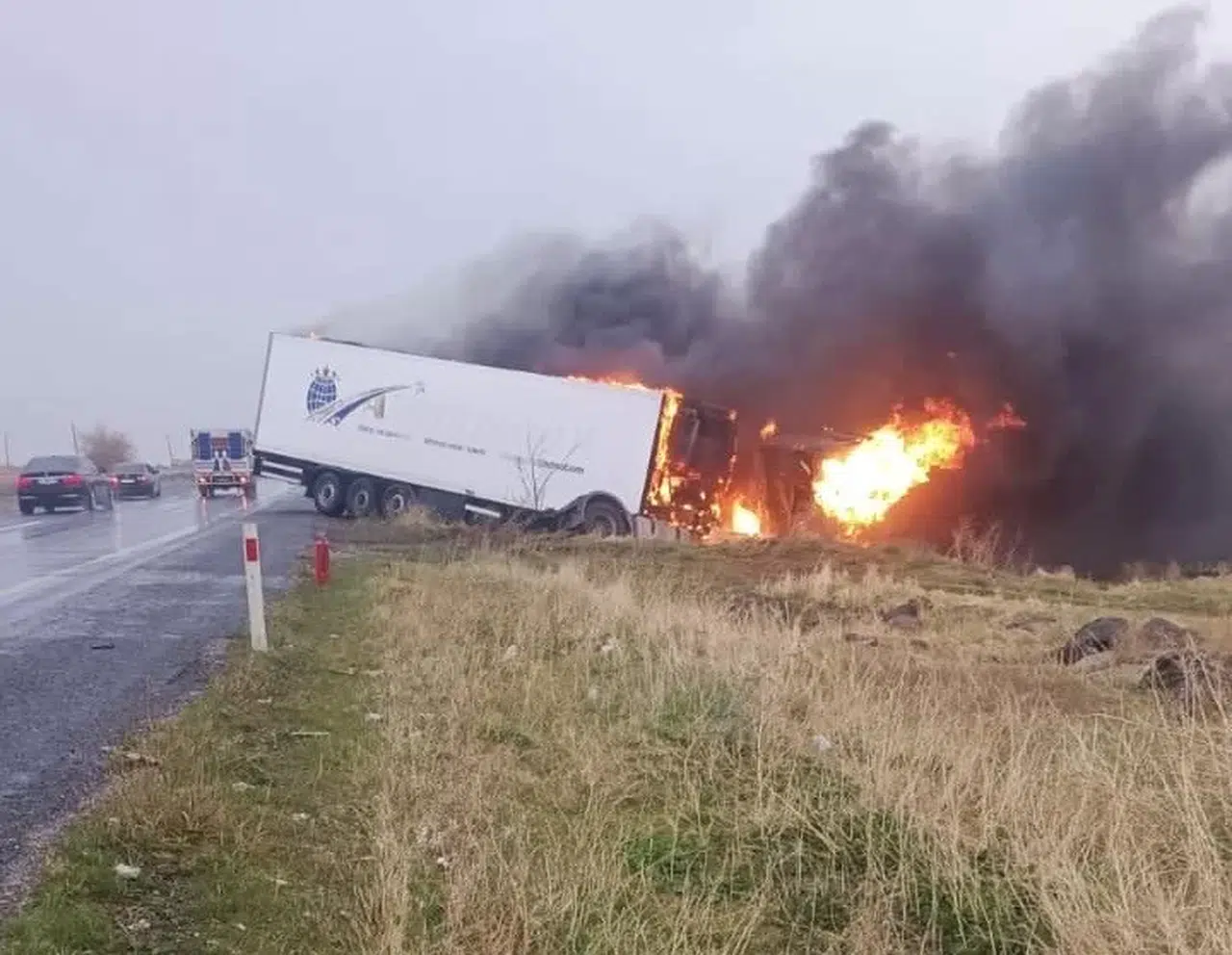 Yangın, kısa sürede tüm aracı sararken, olay yerine itfaiye ekipleri sevk edildi. Ekiplerin müdahalesiyle yangın söndürülürken, tır kullanılamaz hale geldi. Yangının çıkış nedeni araştırılıyor.