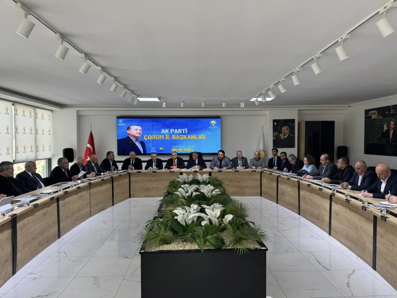 AK Parti Çorum İl Başkanlığında düzenlenen geniş katılımlı toplantı kentin geleceğini şekillendirecek stratejik projelere yönelik görüşmelere ev sahipliği yaptı.