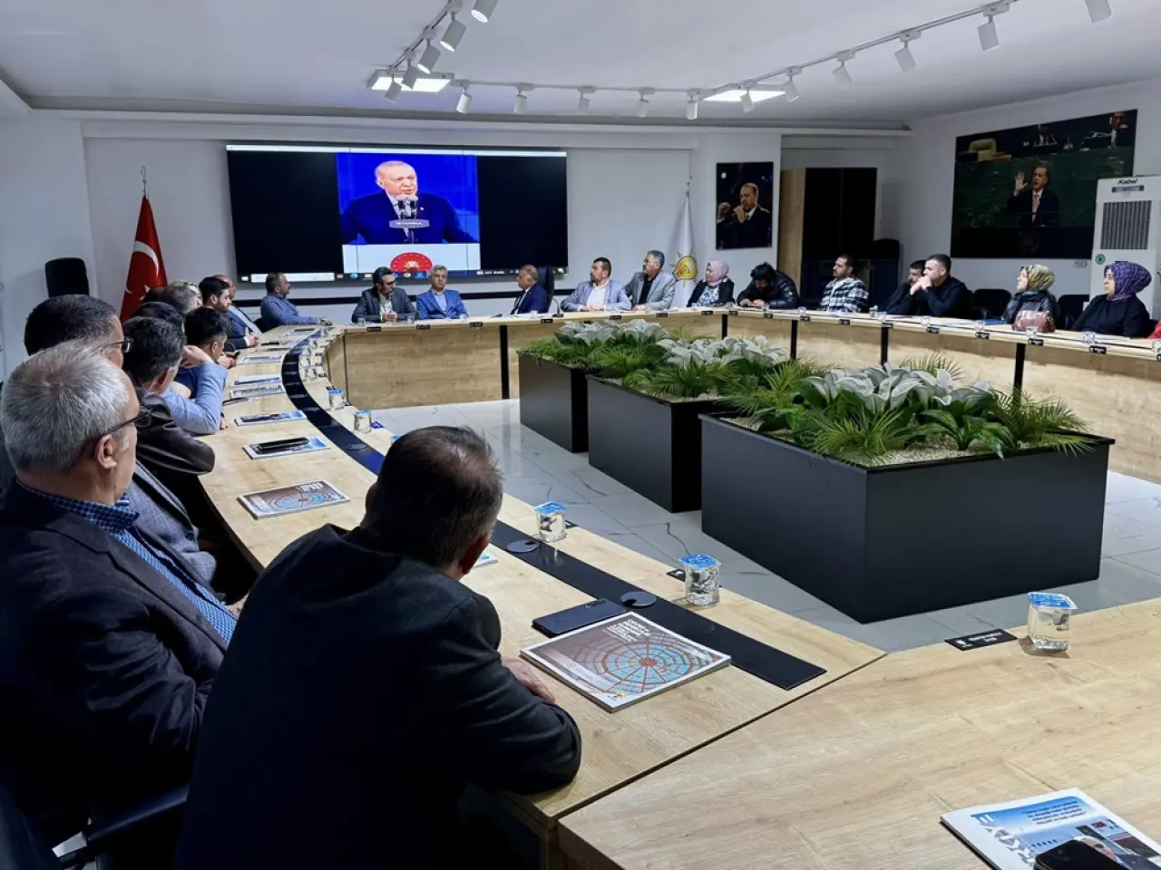 Parti binasında yönetim kurulu üyelerinin katılımıyla düzenlenen değerlendirme toplantısında teşkilatın yürüttüğü mevcut çalışmalar kapsamlı bir şekilde incelenerek istişarelerde bulunuldu.